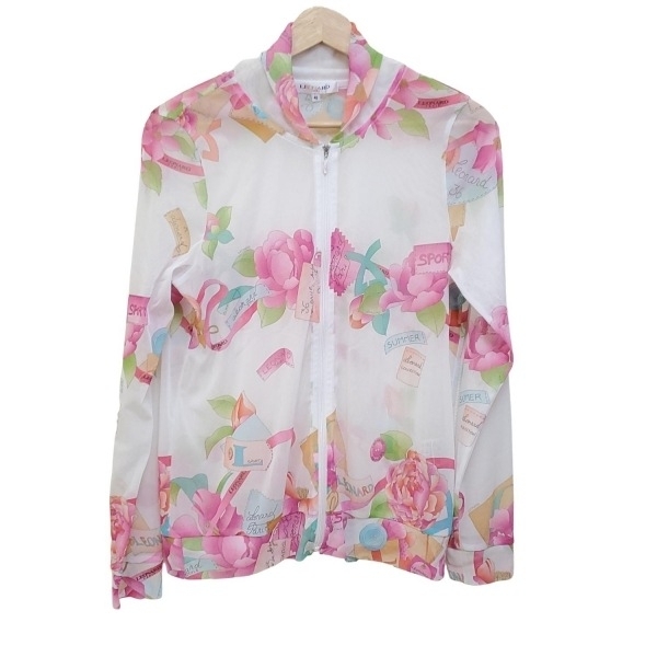レオナールスポーツ LEONARD SPORT ブルゾン サイズ40 M - 白×ピンク×マルチ レディース 長袖/花柄/メッシュ/ジップアップ/春/秋 美品
