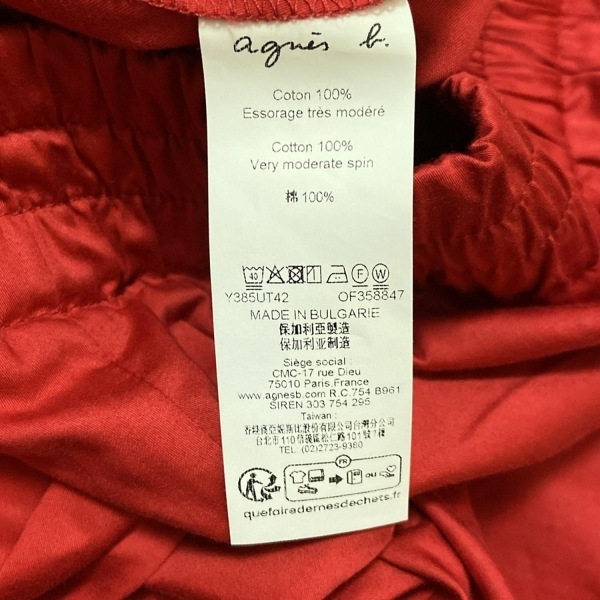 アニエスベー agnes b パンツ サイズ3 L - レッド レディース フルレングス/ウエストゴム ボトムス