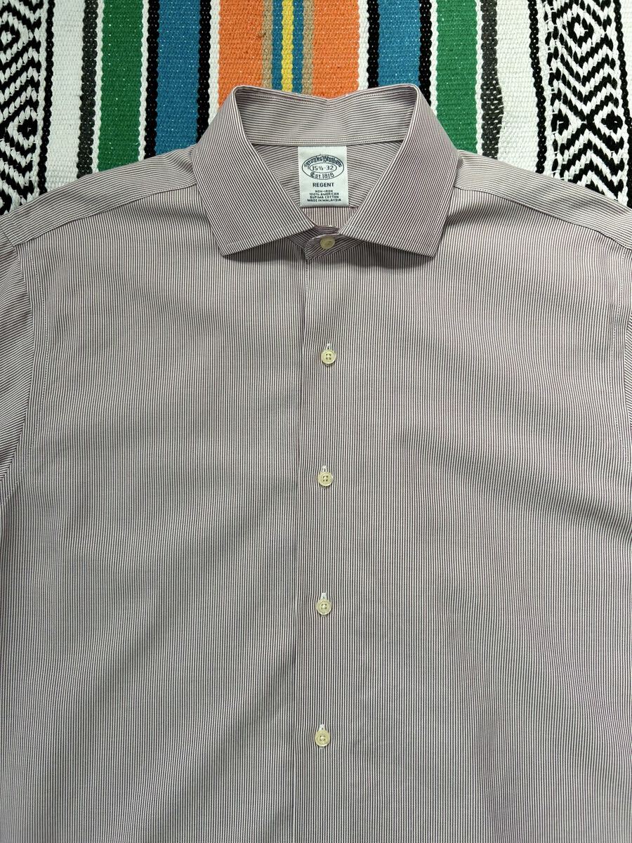 送料無料 ブルックスブラザーズ ドレスシャツ Mサイズ 15H-32 ストライプ BROOKS BROTHERS 長袖 ビジネス スーピマコットン ラルフローレン