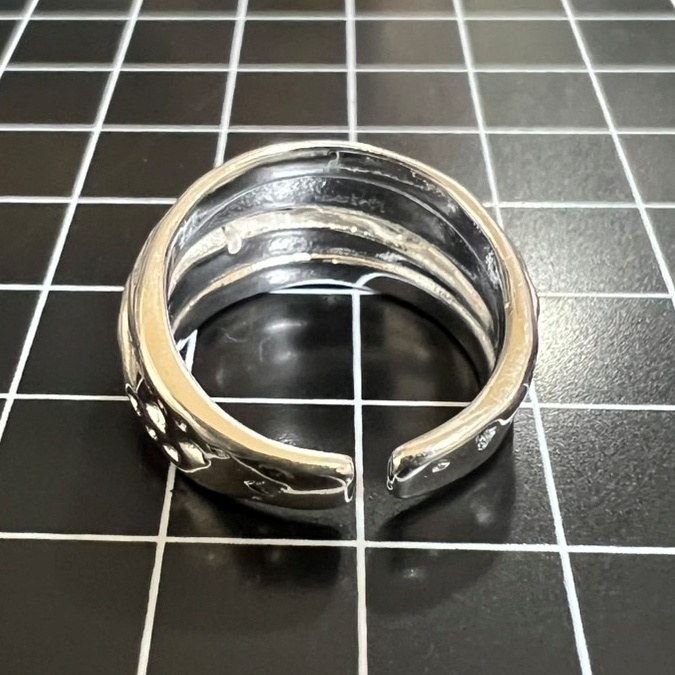 完全に閉じていないフリーサイズのオープンリングのため、開閉することで多少のサイズ調節が可能です。