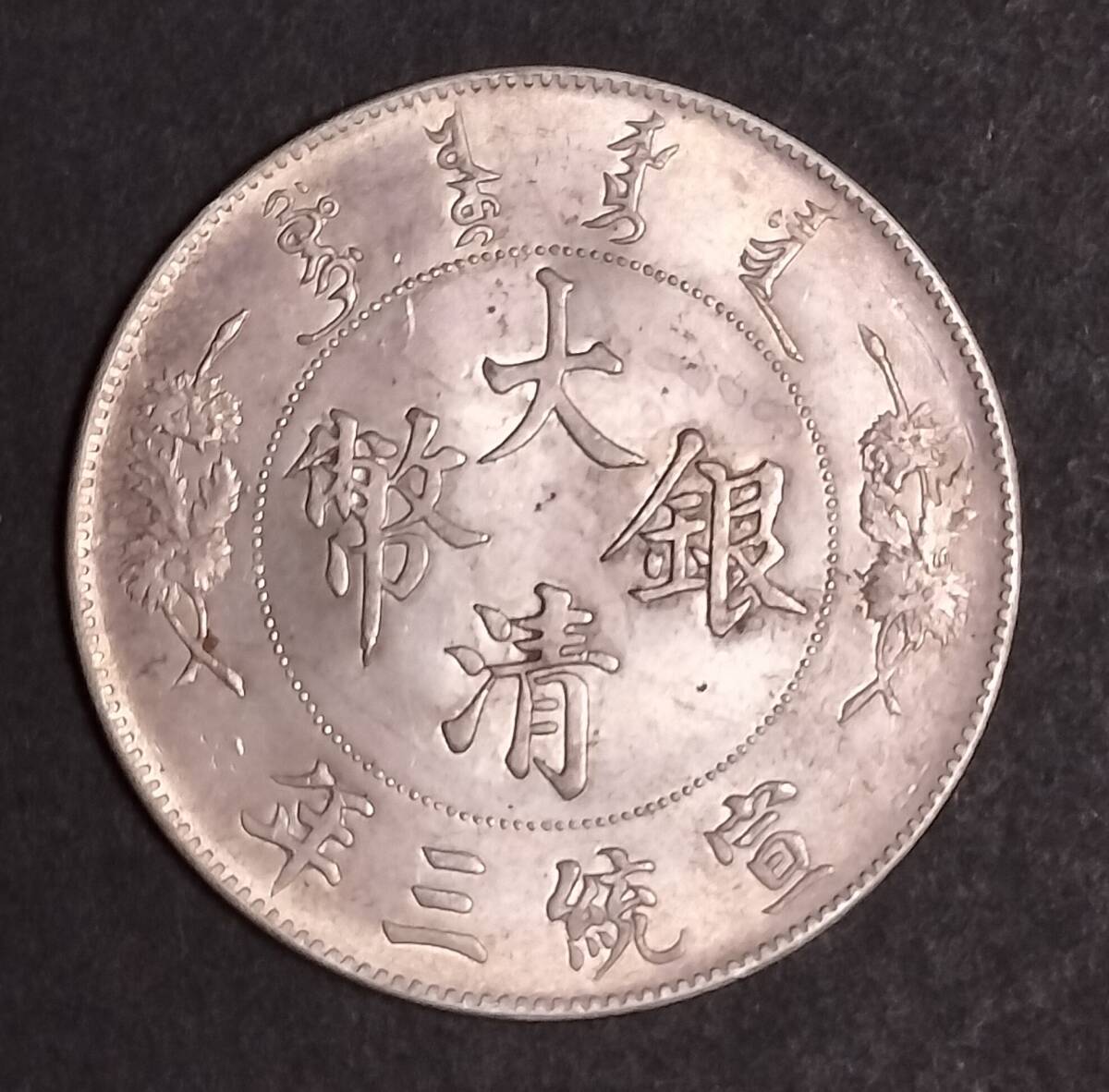 中国古銭 大清銀幣 宣統三年 壹圓 曲髭龍アンティーク【銀貨保障】N2025091502 26.96g 38.8mm 2.3mm