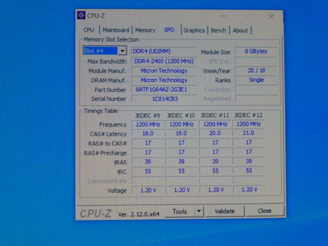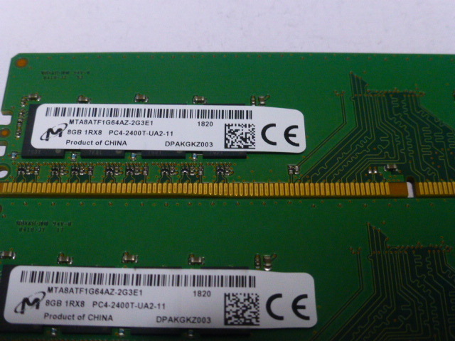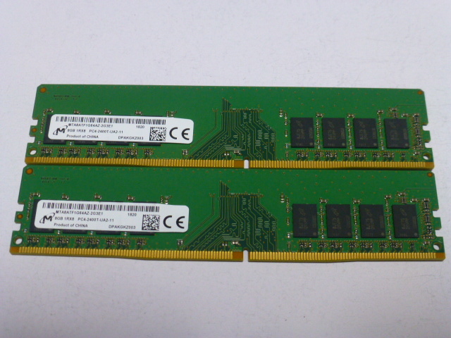 メモリ デスクトップパソコン用 Micron DDR4-2400 PC4-19200 8GBx2枚 合計16GB 起動確認済みです