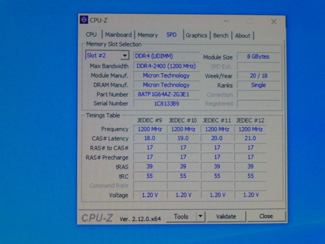 メモリ デスクトップパソコン用 Micron DDR4-2400 PC4-19200 8GBx2枚 合計16GB  起動確認済みです