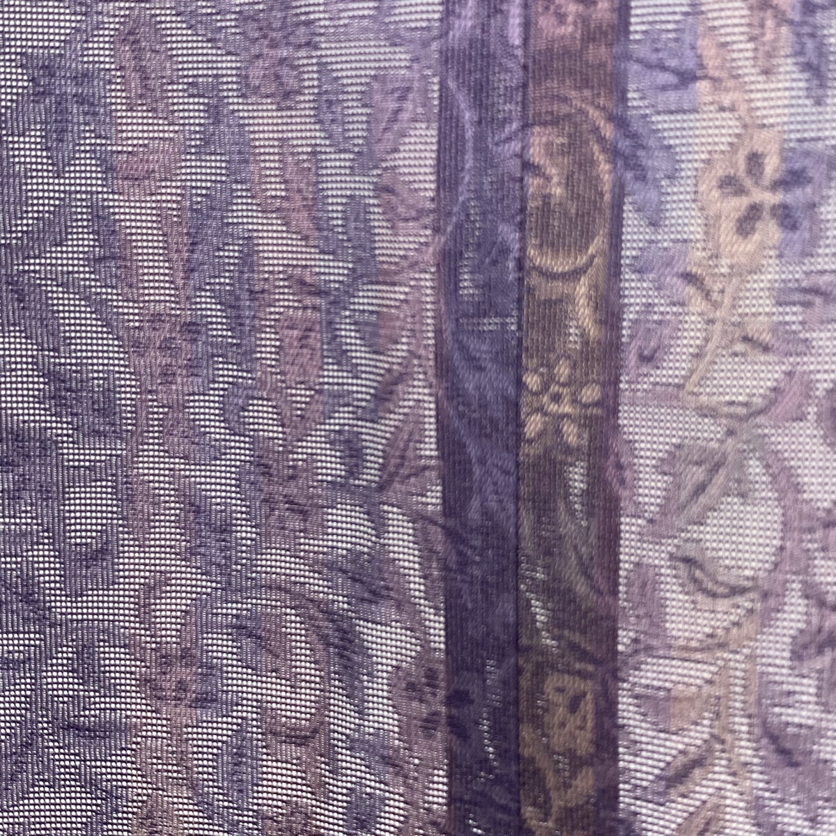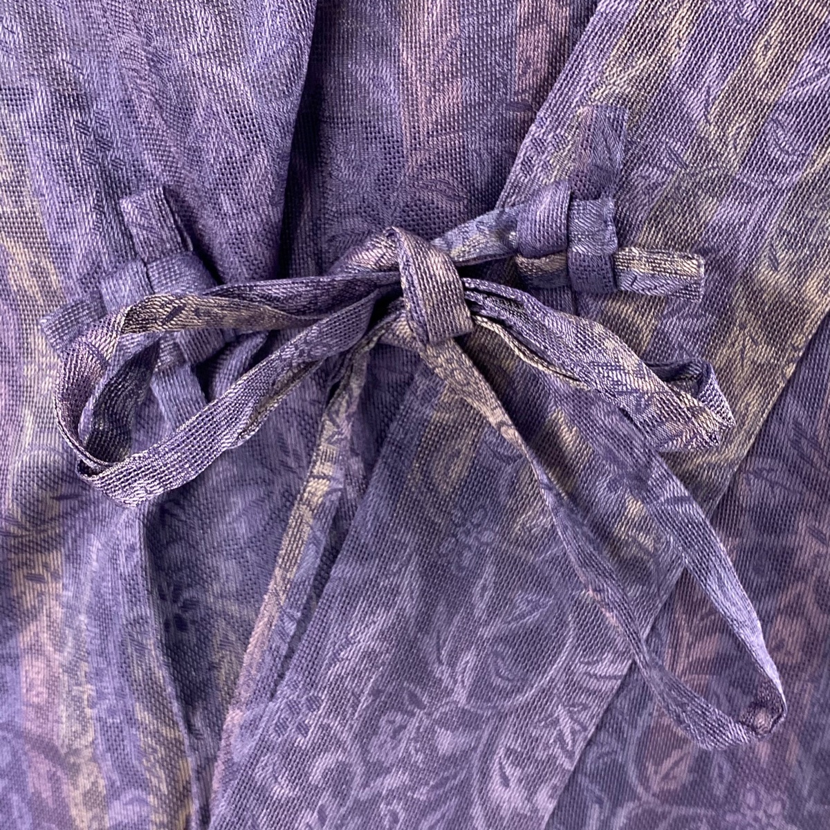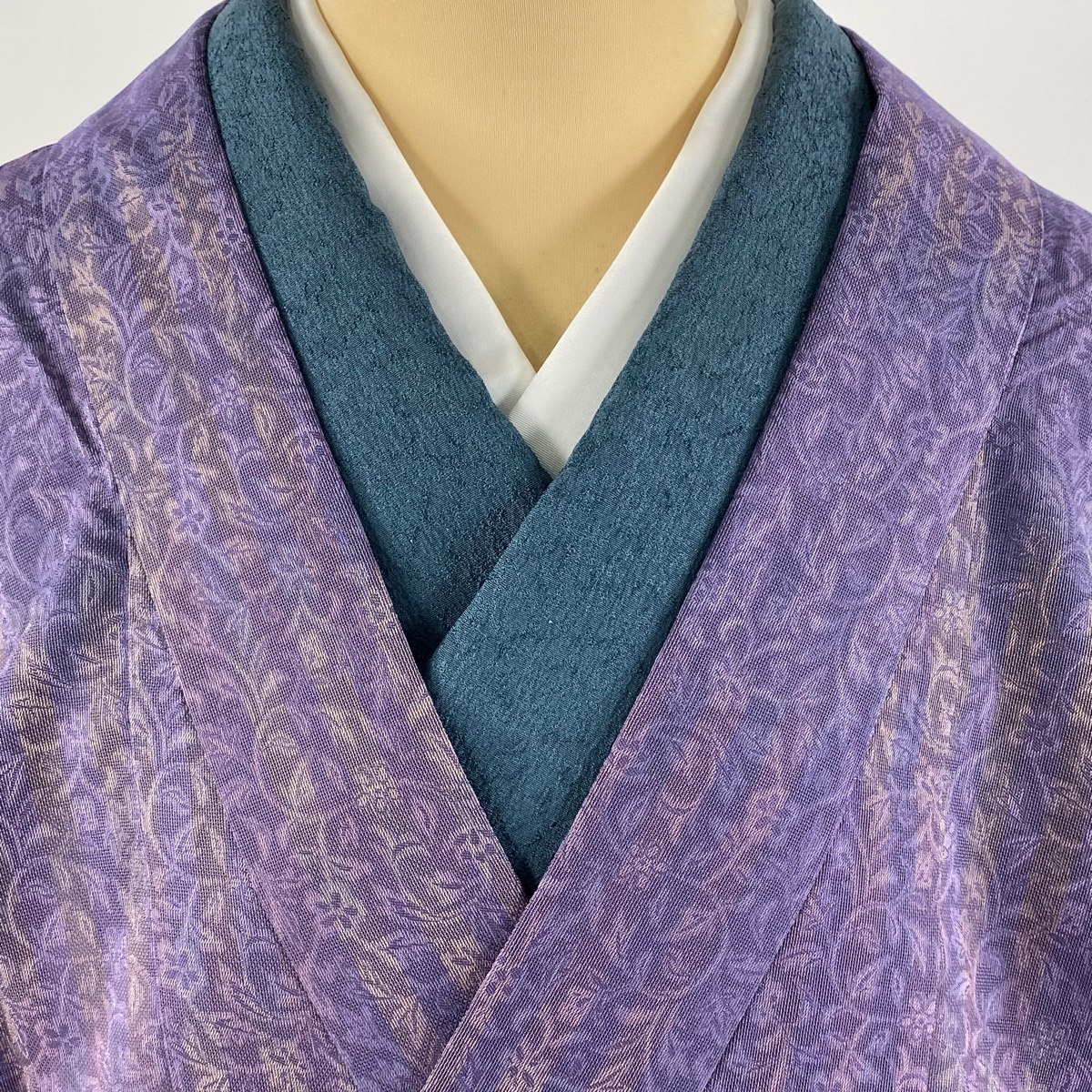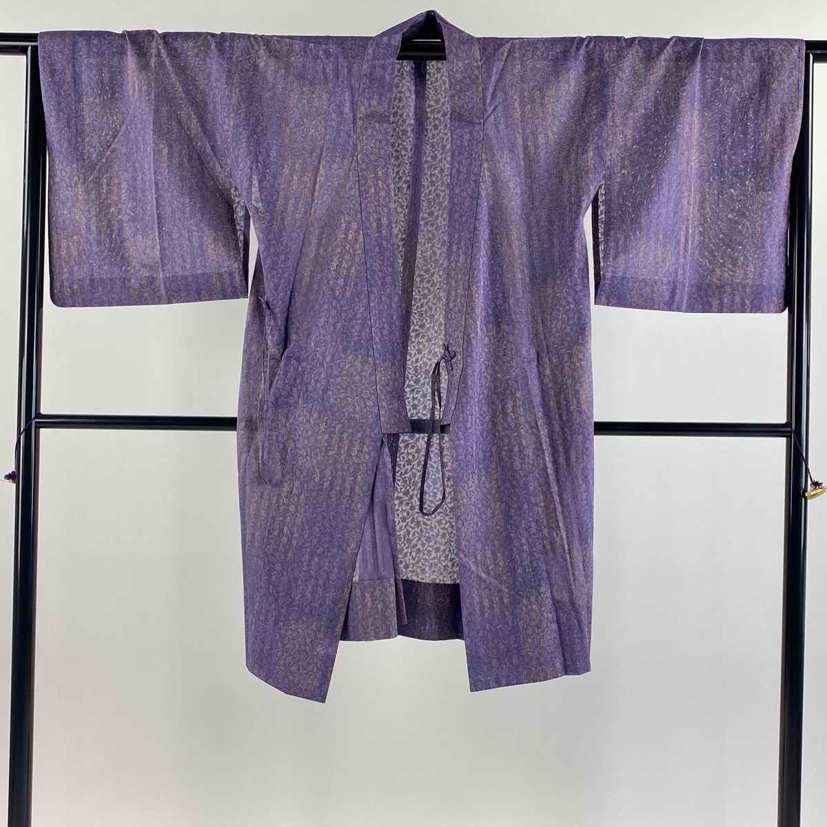 | 道中着 逸品 和装コート 着物衿 花唐草 縦縞 ぼかし 泥染 紫 身丈105.5 裄丈67.5 L 正絹 【中古】 |