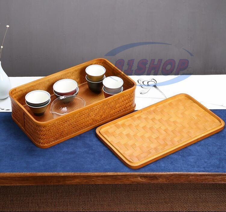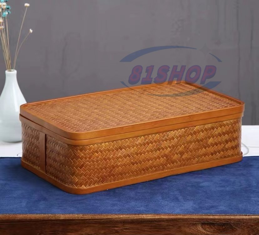 「81SHOP」竹編みの茶器の収納箱竹制漆茶箱カンフー茶道の貯蔵籠の弁当箱の手作りの茶箱