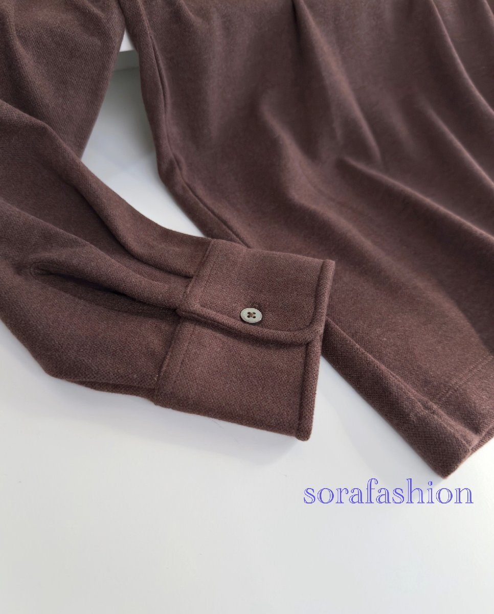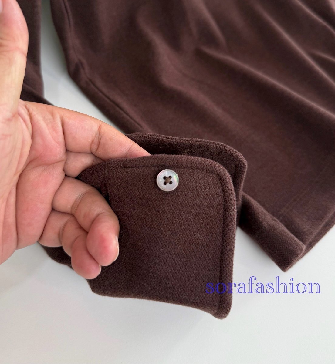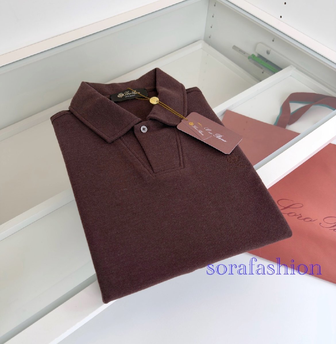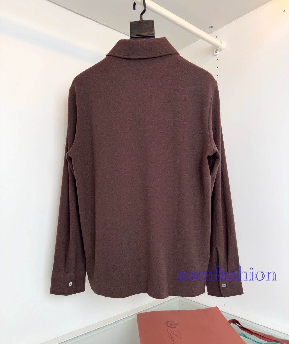 Loro Piana ロロピアーナ メンズ長袖ポロシャツ T-シャツ コーヒー Mサイズ トップス カットソー 無地 シンプル 紳士服 刺繍ロゴ 裏起毛