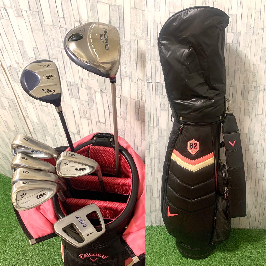 良品 高級大人気Callaway/キャロウェイキャディバッグ付 DUNLOP/ダンロップ HI-BRID/ハイブリッド EZ CF1 レディースゴルフセット8本 初心者にもおすすめ FLEX L