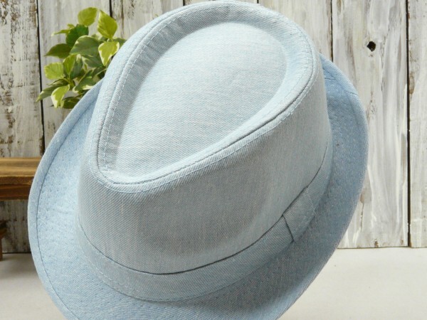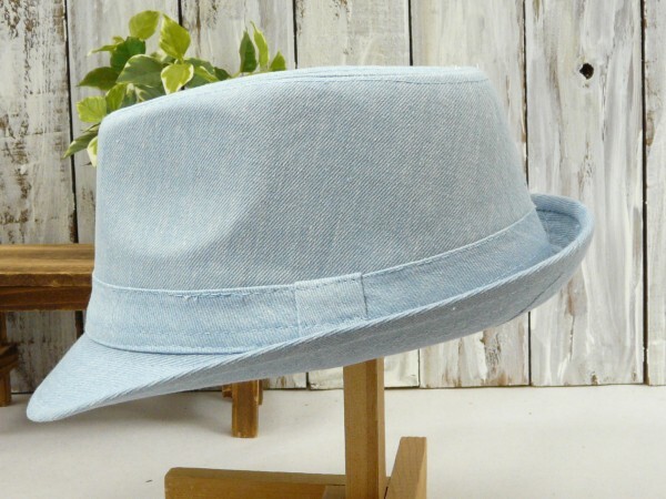全国一律送料450円 フェドラハット デニム インディゴライトブルー 編男女OK  サイズ調整可 ハット パナマ ボルサリーノ 中折れ