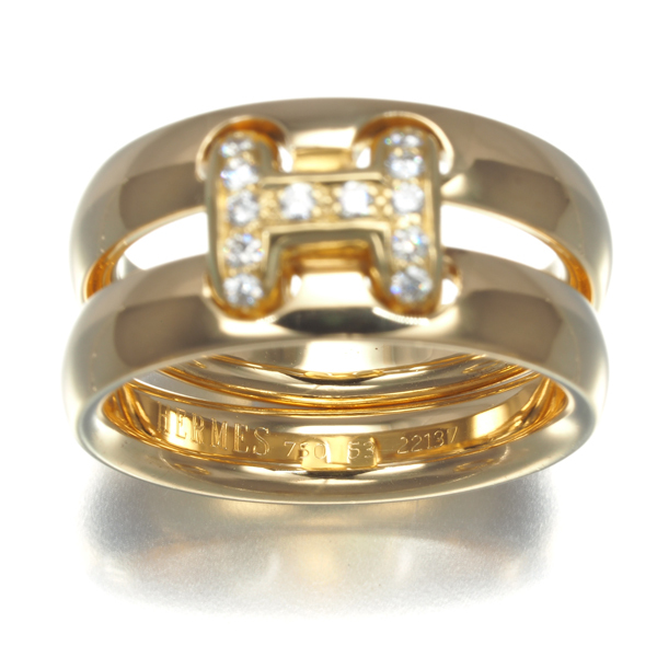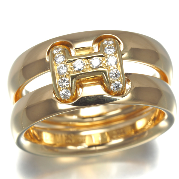 程よいボリュームを持たせたリングに包まれ、厳選ダイヤを飾ったエルメスの頭文字 『H』 をデザインした オランプ ダイヤモンドリングです。 |