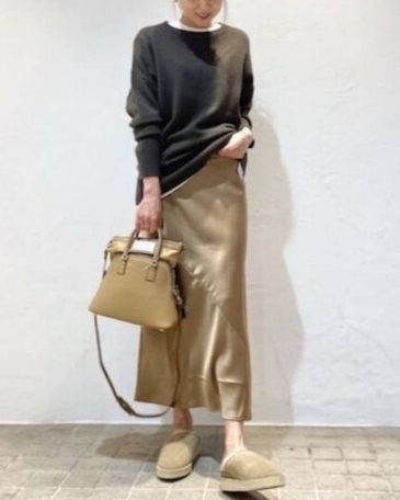 女性らしい柔らかな色とのコンビネーション、滑らかな素材との組み合わせで、相反するものから生まれる女性らしい魅力を引き出してくれるアイテムです。