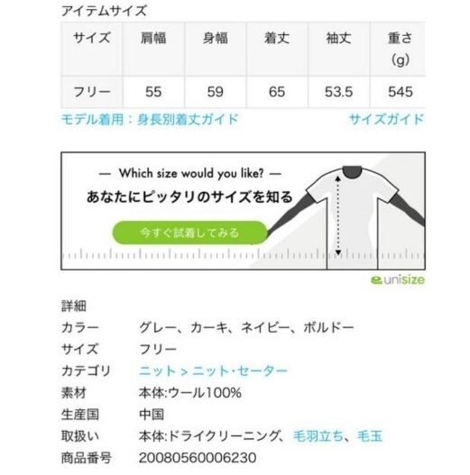 (肩幅55cm 身幅59cm 着丈65cm 袖丈53cm)