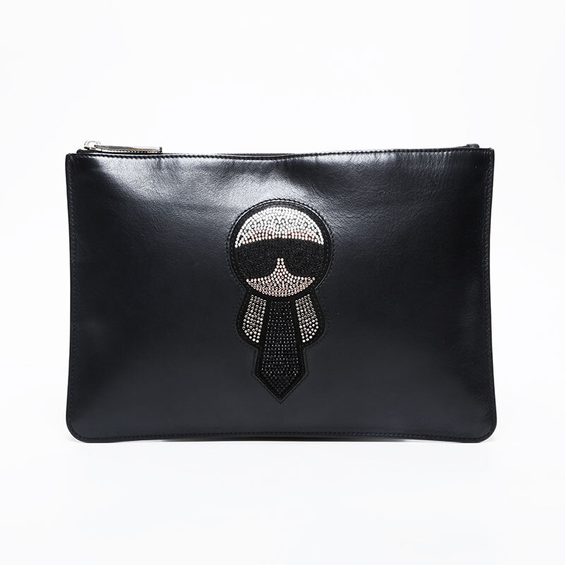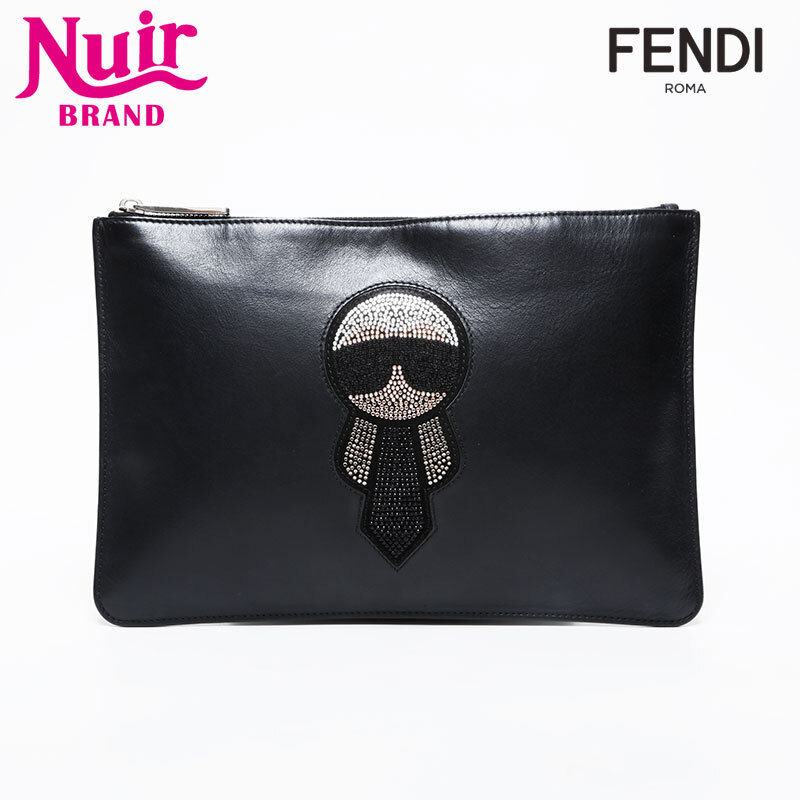 フェンディ FENDI クラッチバッグ ラインストーン カール ラガー フェルド ブラック