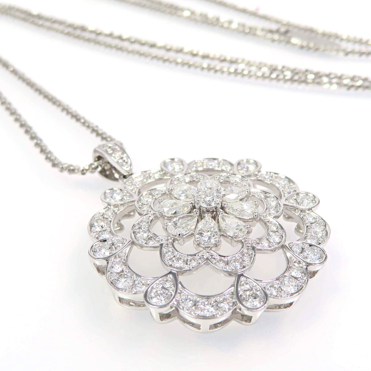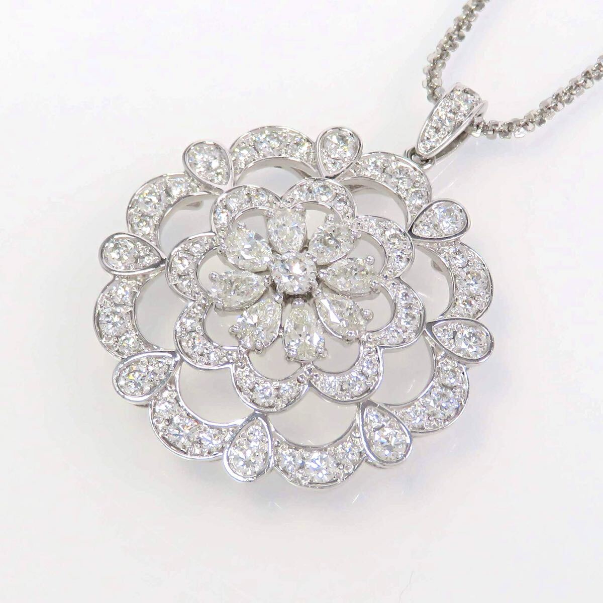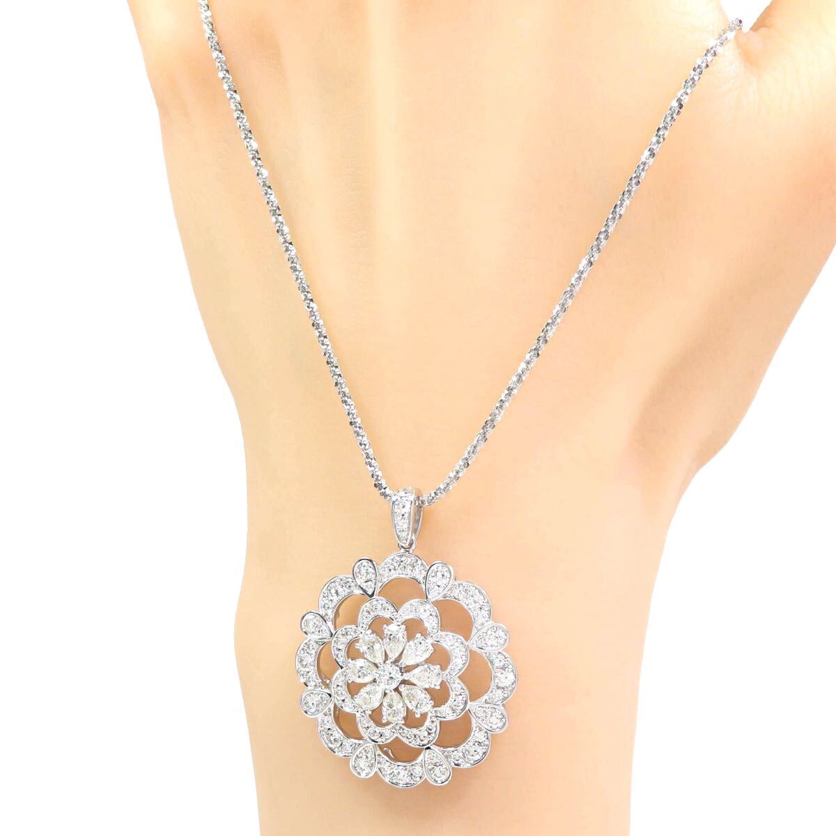 合計2.40ctものダイヤモンドが、花びらのように幾重にも重なり、まるで光の花が咲き誇るかのような美しさを放ちます。