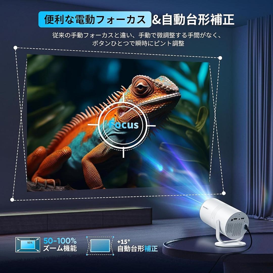 手動でフォーカスを調整する時代から解放!!この小型 プロジェクターは、リモコンのワンクリックで最適な画面に素早く修正・調整が可能です