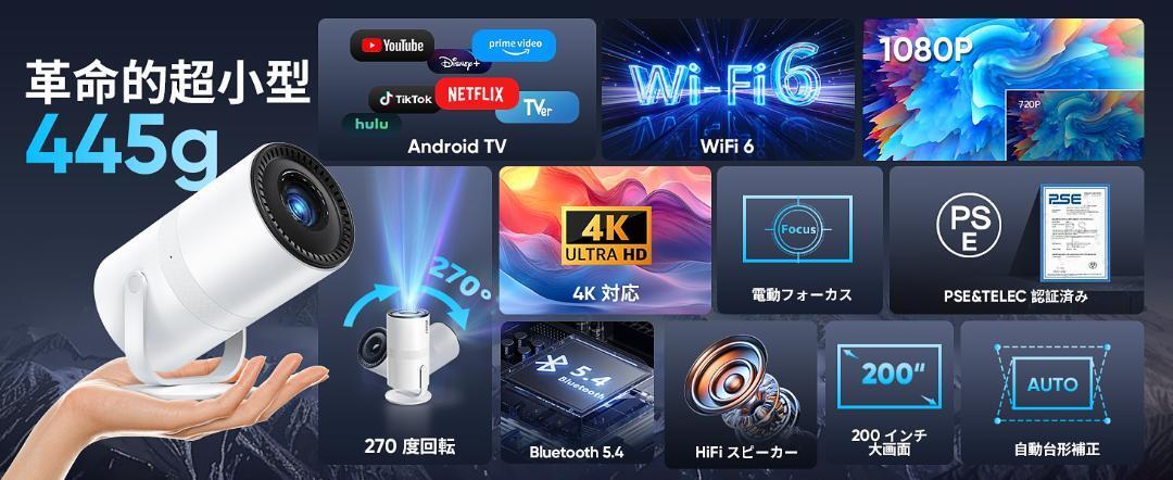 市販初の電動フォーカス&便利な自動梯形補正&最大200インチ投影】