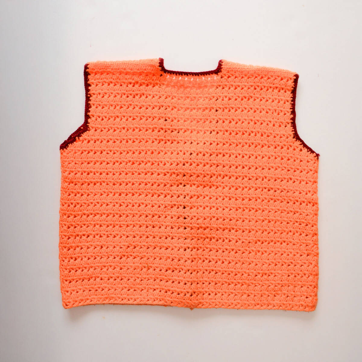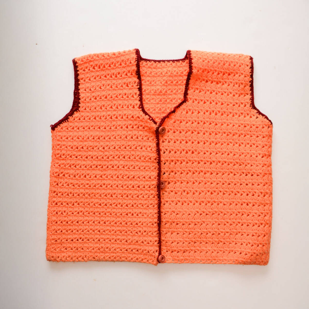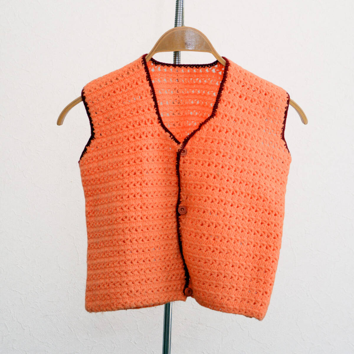 1960〜70年代頃に一般家庭でハンドメイドで仕立てられた、昭和レトロなアクリルニットベストです。