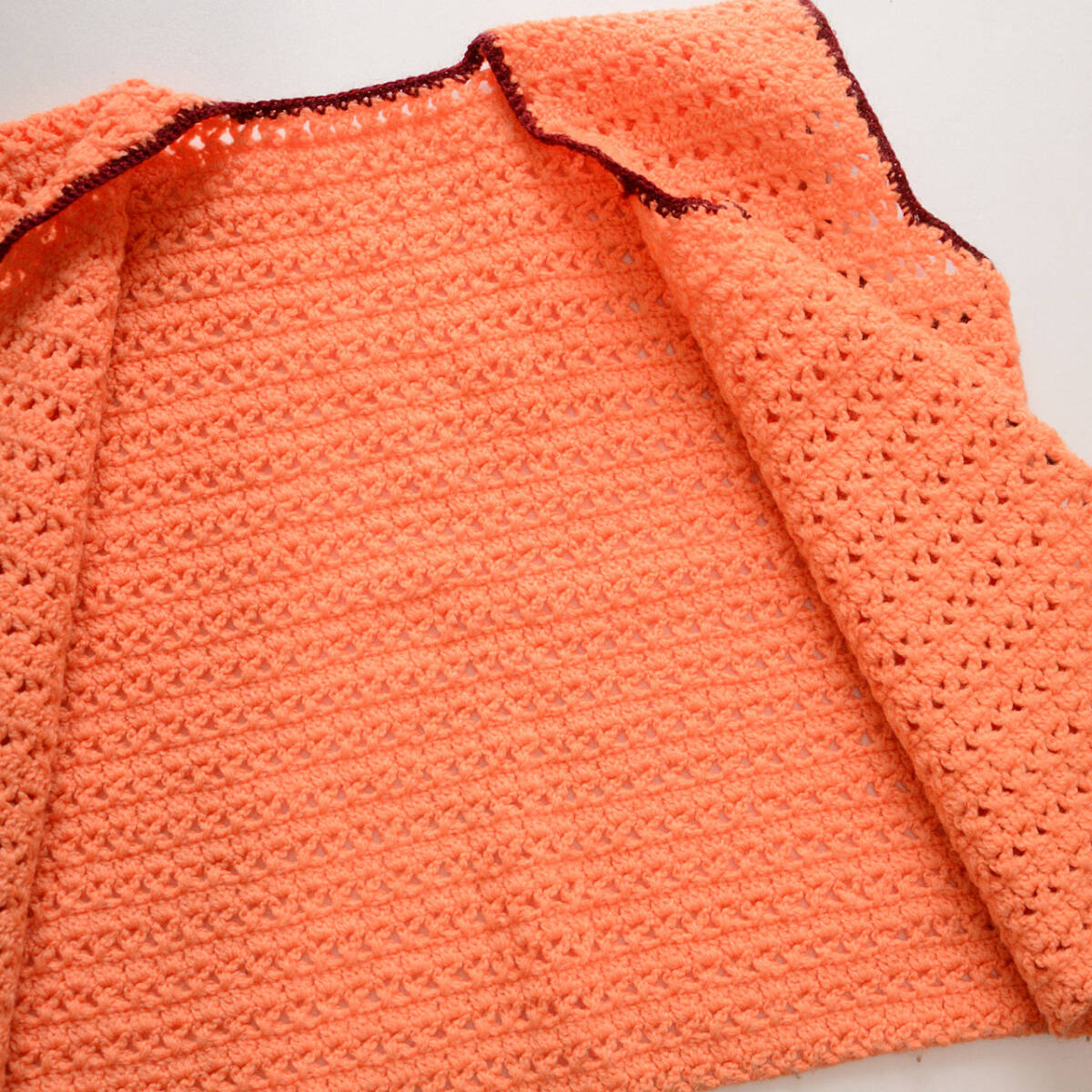 軽く柔らかなアクリル糸で編まれ、素朴な編み模様と色合いが温かみを感じさせます。
