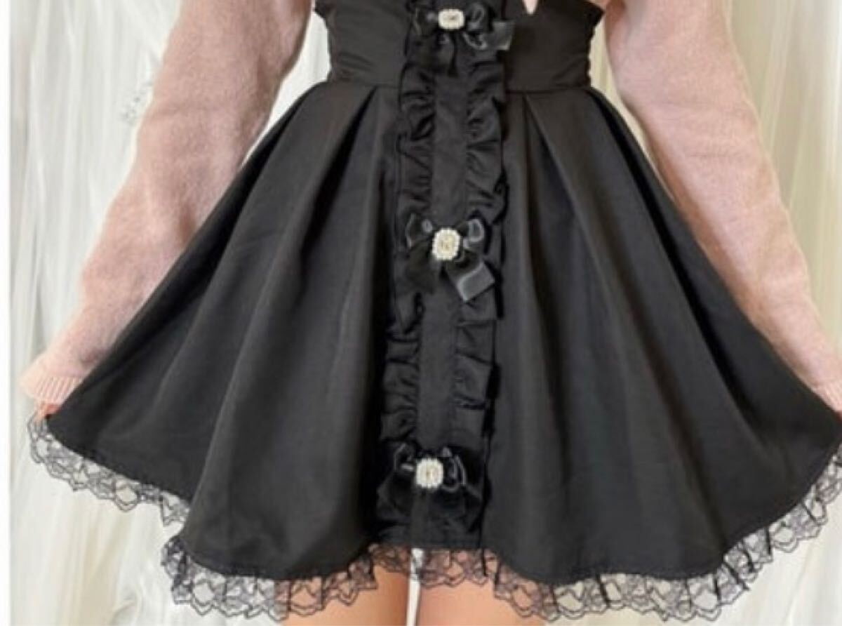 新品 タグ付き 眞白ありす ビジューフリルスカート 黒 LLサイズ 総丈47.5㎝ ウエスト69cm ミニスカ 量産型 地雷系 黒ロリータ ゴスロリ