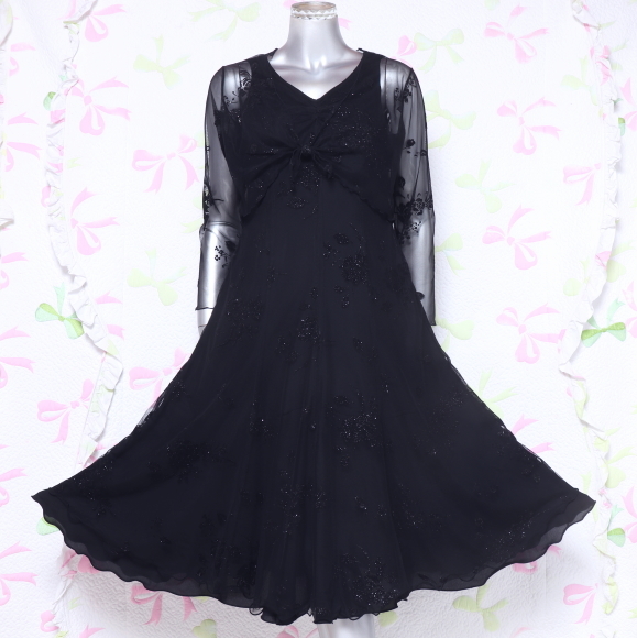 :ドレス:フロッキー加工ネット生地と無地の生地使用・裾部分にソフトワイヤー使用・たっぷりの生地使用・後ろファスナー