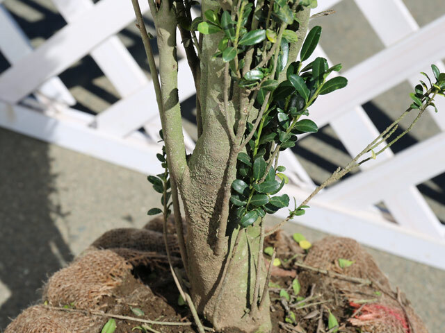 スカイペンシルはモチノキ科のイヌツゲの仲間です。枝がすべて上を向いて伸びますので樹形が引き締まっています。葉はイヌツゲと同じ小さく光沢がある葉です。一年中葉が落ちません。あまり伸びず、枝が暴れたりしませんので剪定の必要がありません。非常に手間が掛からない品種です。初夏に小さい白い花を咲かせ黒い小さい実がなります。日陰にもよく耐えますので植える場所を選びません。