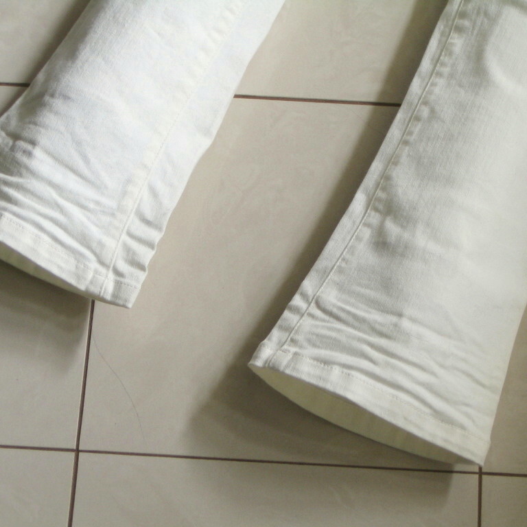 ウエスト81 わたり幅(股の付け根の太腿幅)26.5 前股上23 股下90 膝幅(股下30cm部分)18.5 裾幅20(cm/約)