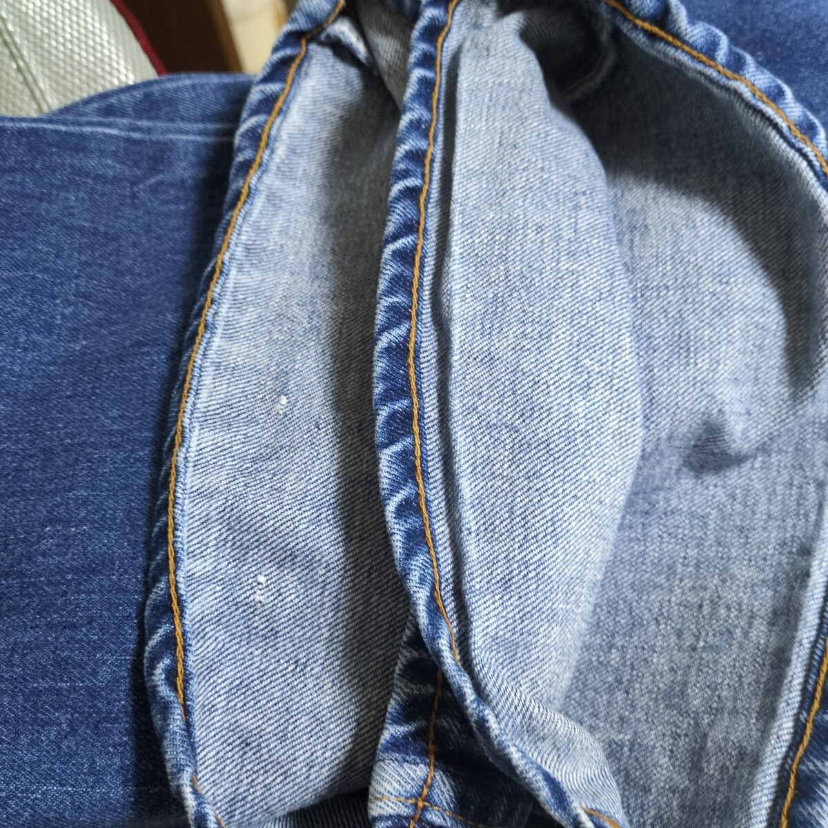 左膝下辺りに伝線のような織ムラあります。