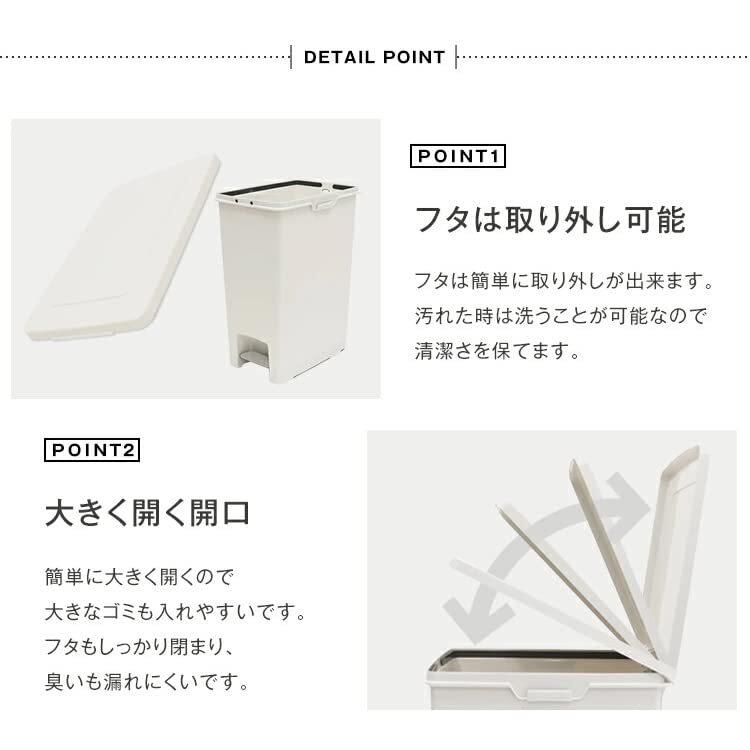 説明 ペダルを踏むことでフタが開けられるため、手で触れることなく衛生的です。フタ付でゴミのニオイも軽減