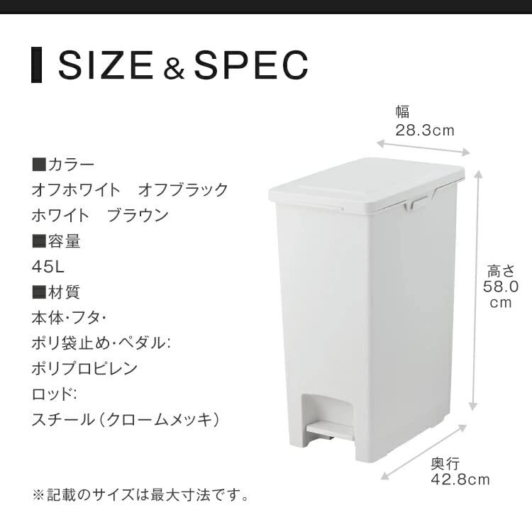・材質:本体・フタ・ポリ袋止め・ペダル/PP、ロッド/スチール(クロームメッキ)