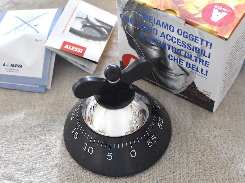 ALESSIのアナログ式のキッチンタイマーです。インテリアとしても可愛らしいです。タイマーの音はジリリリというベルの音になります。