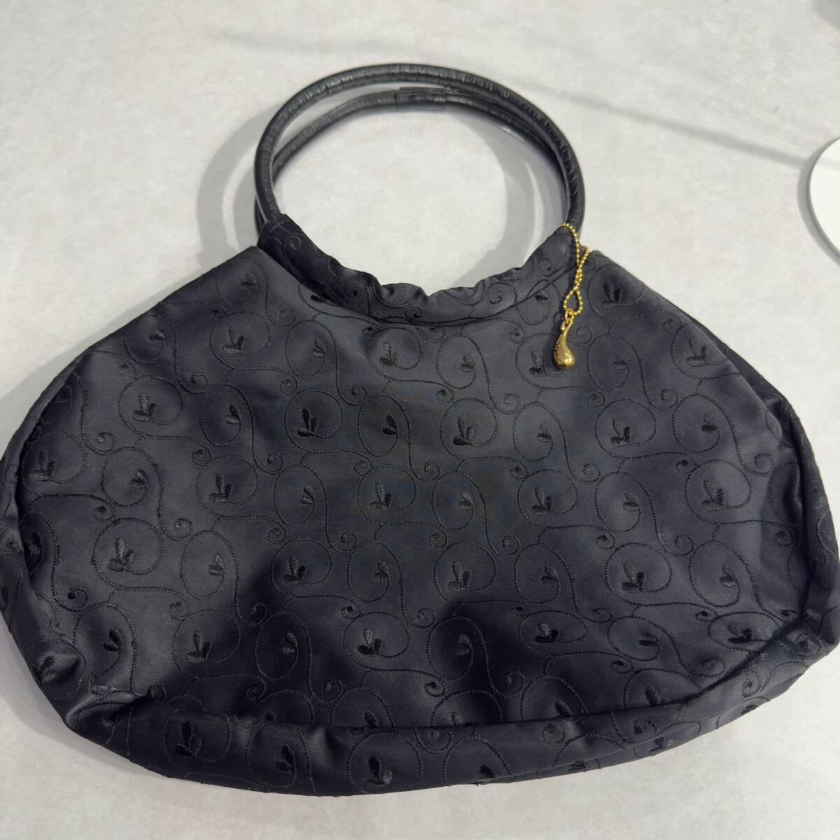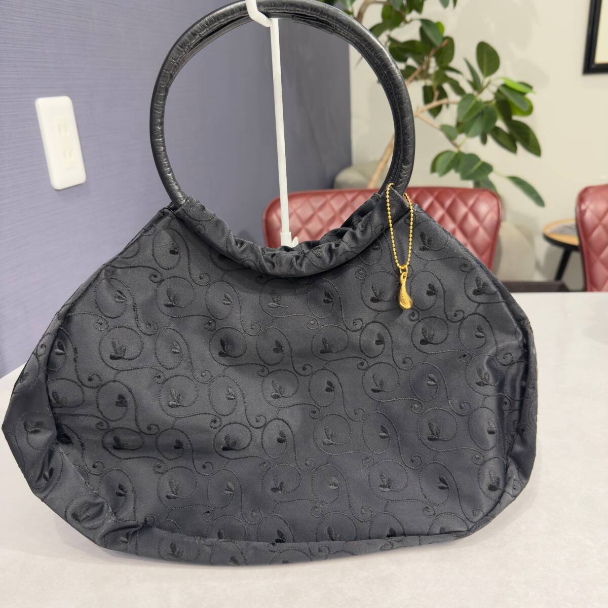 | H7-8-21 marie claire マリークレール ハンドバッグ リングバッグ ナイロン 黒 中古 | |||