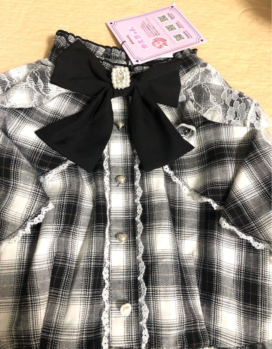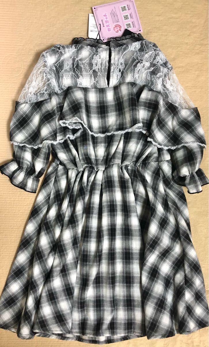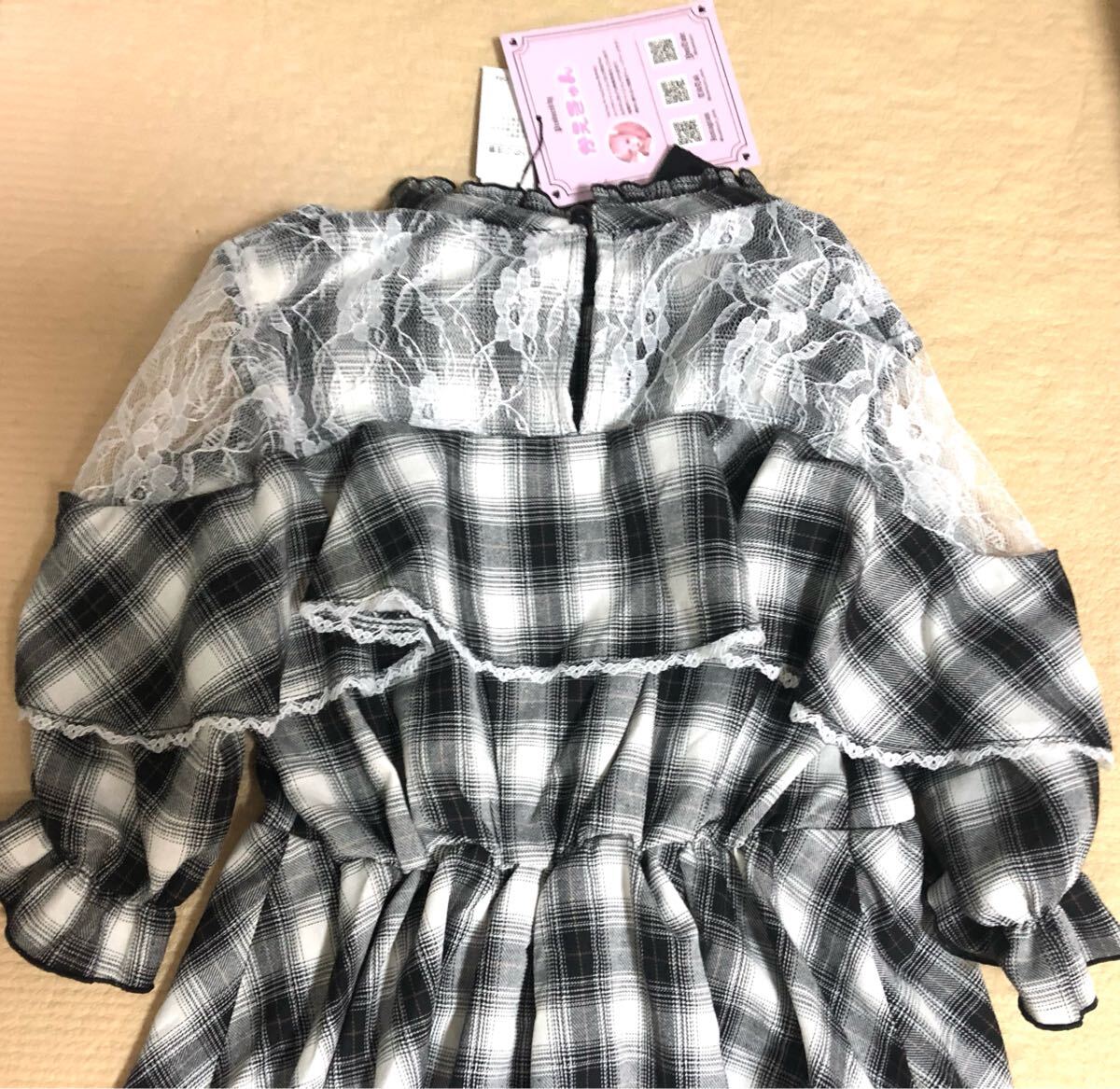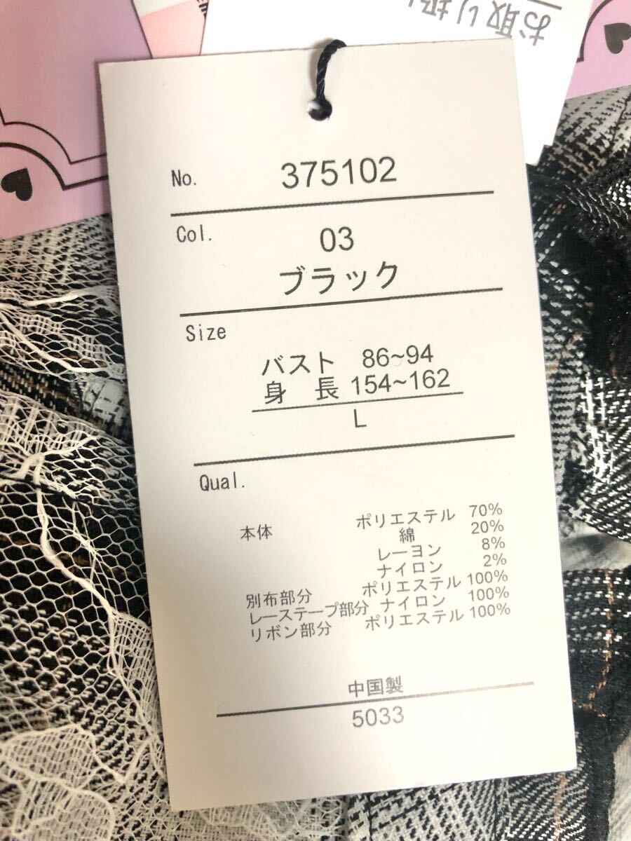 新品 かえきゅん 半袖 ケープ風レースワンピース チェック柄 黒 Lサイズ リボン付き 地雷系 小悪魔系 ロリータ 量産型 お嬢様 黒ロリ 匿名