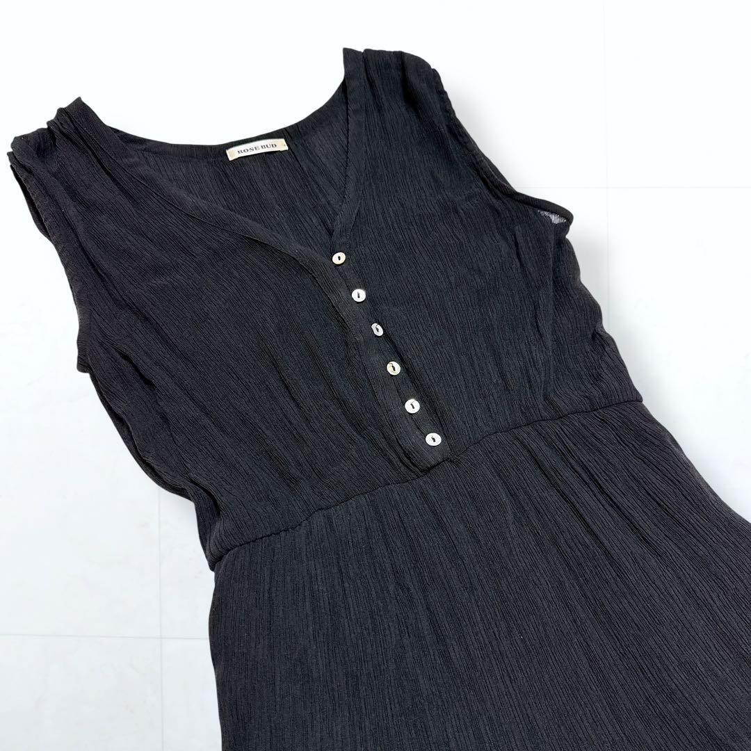 深めのVネックでお顔周りスッキリ、レイヤードのコーディネートがしやすいスリーブレスワンピースです。