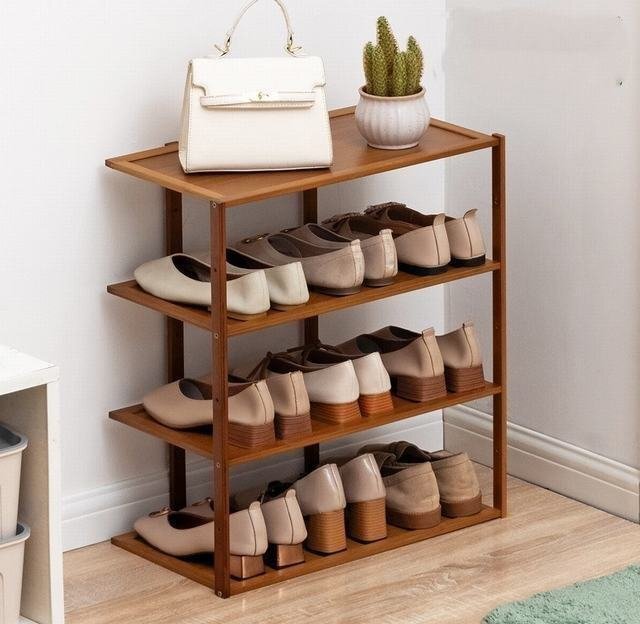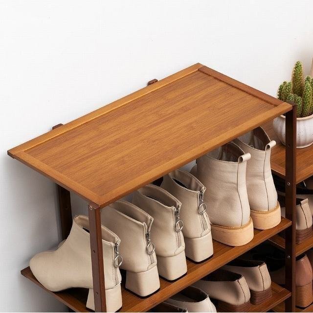 靴収納ラック 竹製 玄関ラック 収納棚 4段 大容量 収納 ラック 靴収納 軽量 組み立て式