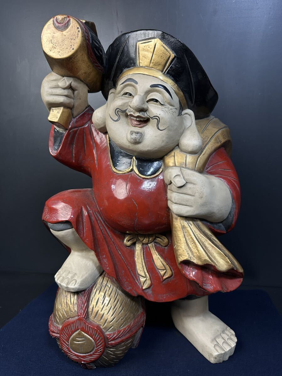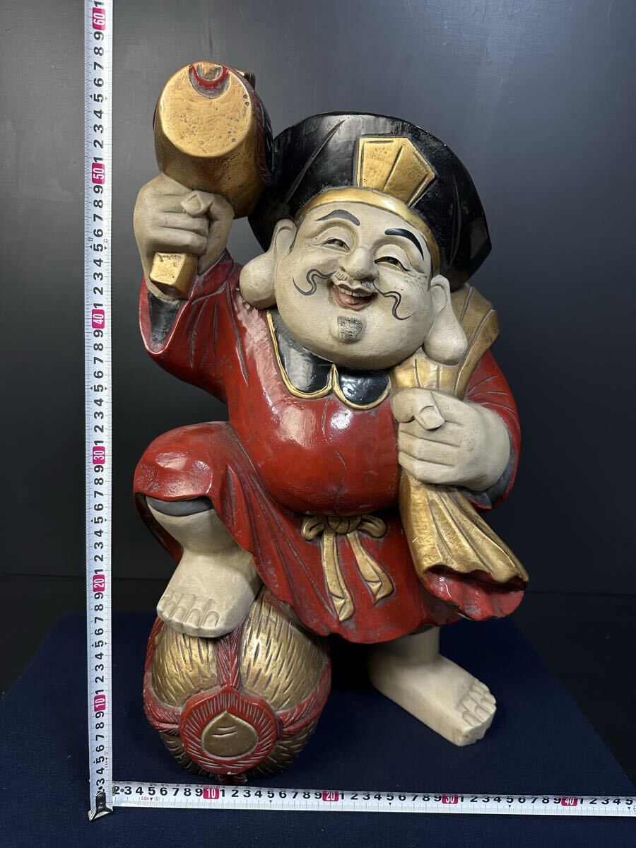 [B895] 木彫 縁起物 大黒天 置物 商売繁盛 木製 木彫り 彫刻