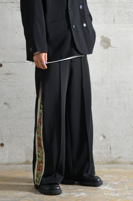 新品 定価6980円 オブタス 2way サイド ライン ワイド パンツ 黒 ブラック 緑 グリーン メンズ XL L M OFTAS トラック スラックス ジャージ