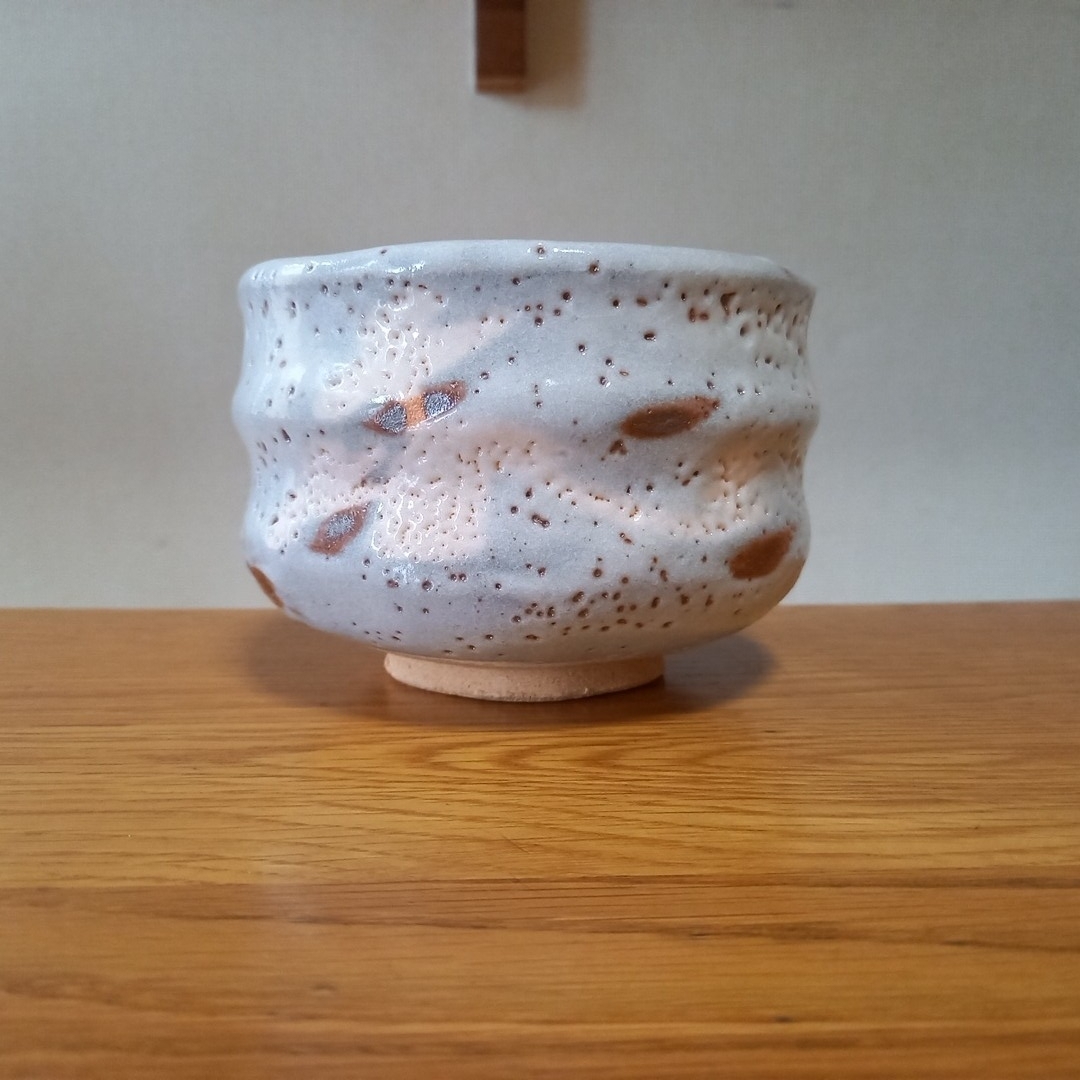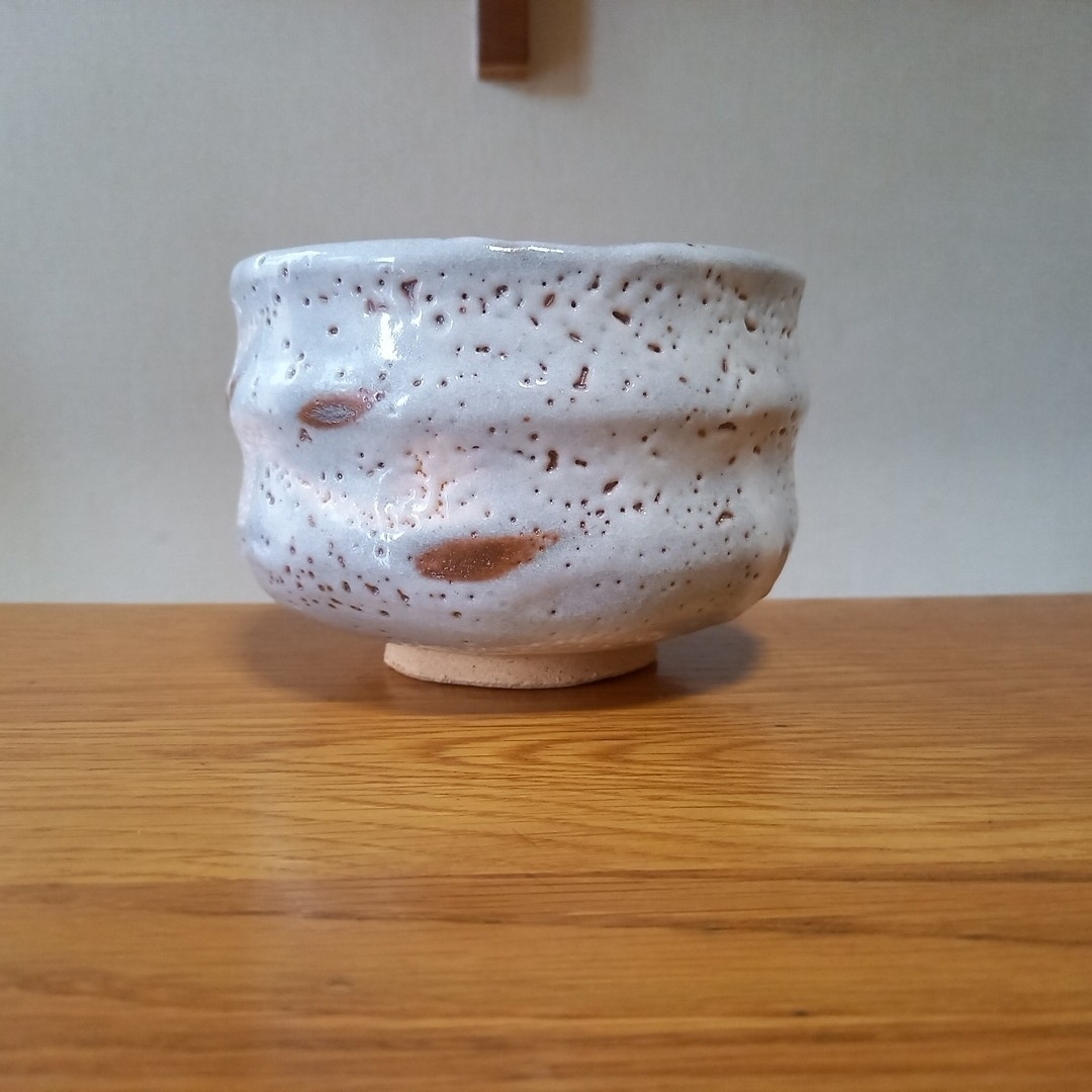 削りや、絵など一つ一つ手作業で作ってある抹茶茶碗です。