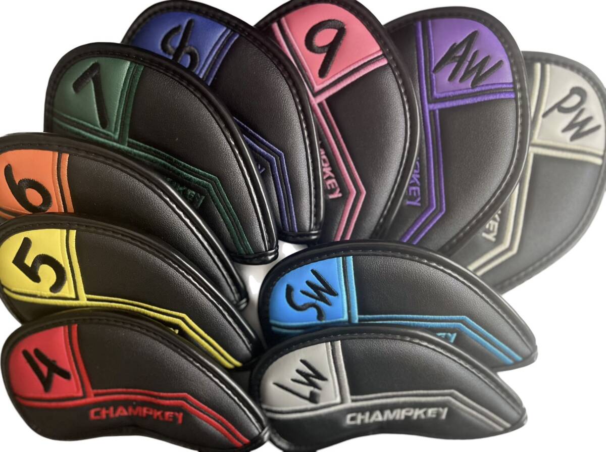 ゴルフアイアンカバー レザー 刺繍入り 防水 高級感 4番〜9番 AW PW SW LW 10枚 セット 番手付き
