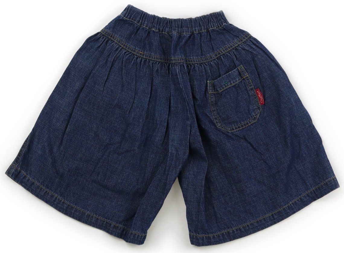 ひざ下半端丈。ウエストは総ゴムです。前身頃に小さい赤いインク汚れが2か所ありますがまだまだお使いいただけそうです。
