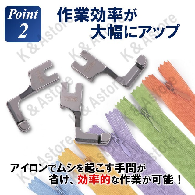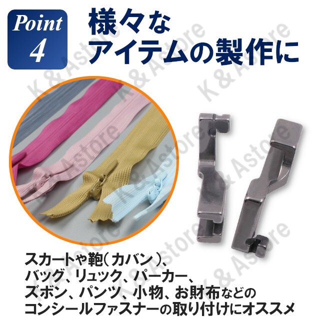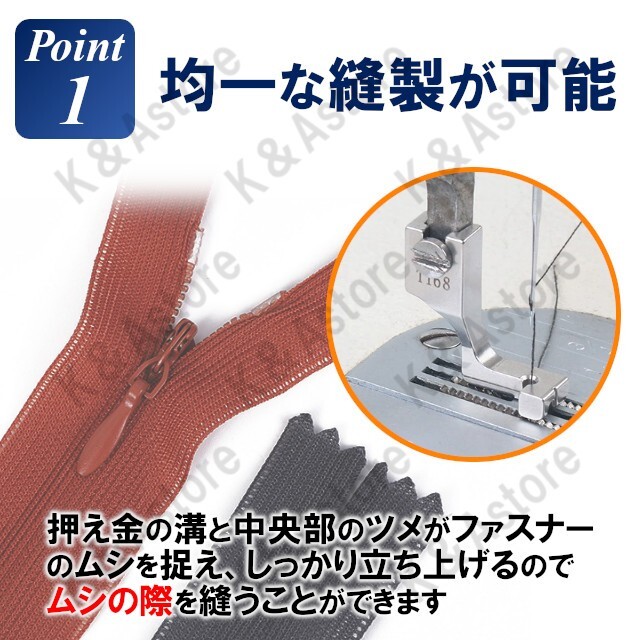 コンシールファスナー押え 2mm 本縫いミシン 工業用ミシン 職業用ミシン ミシン押え 押え金 洋裁 アタッチメント ジッパー ハンドメイド