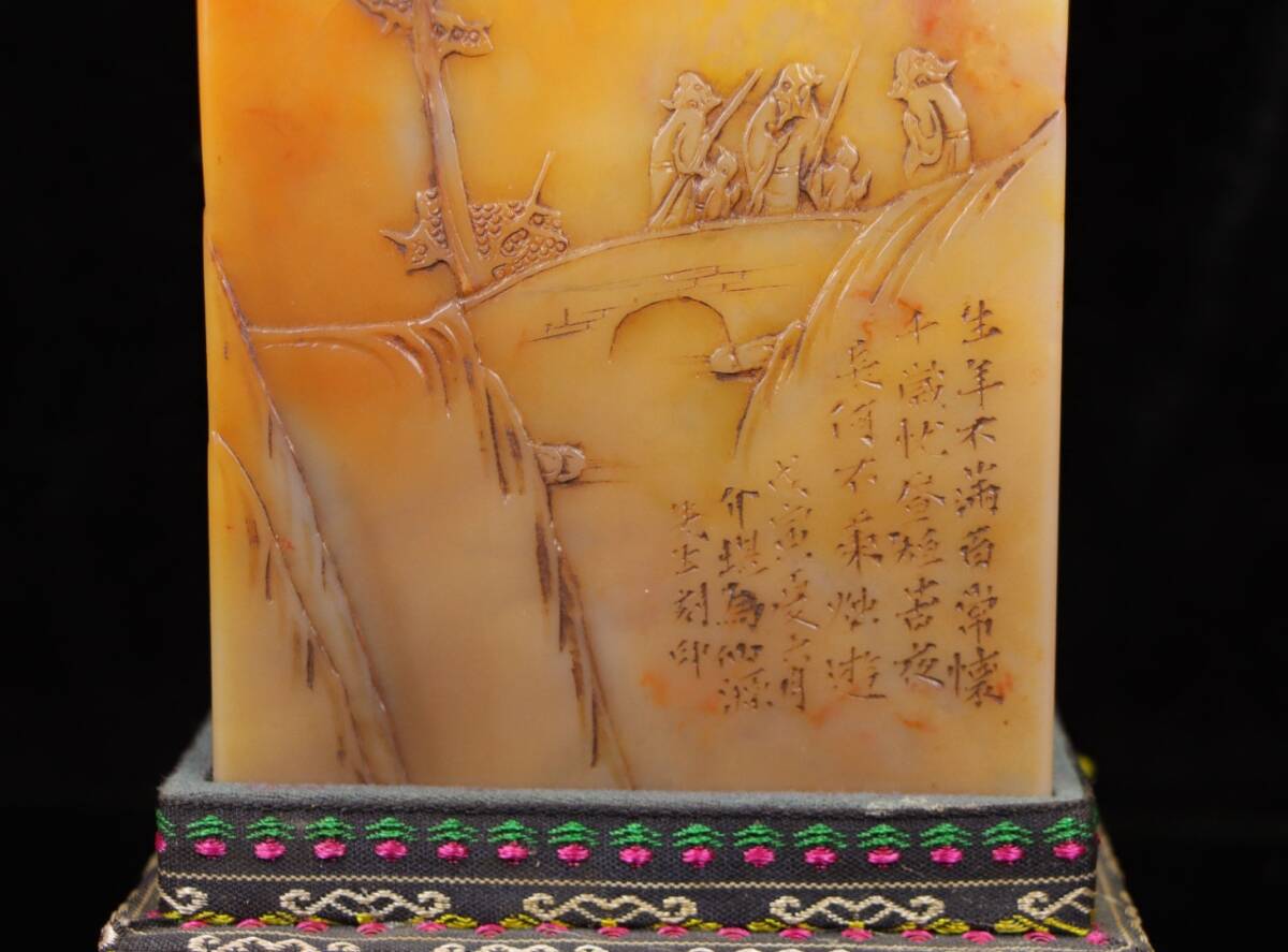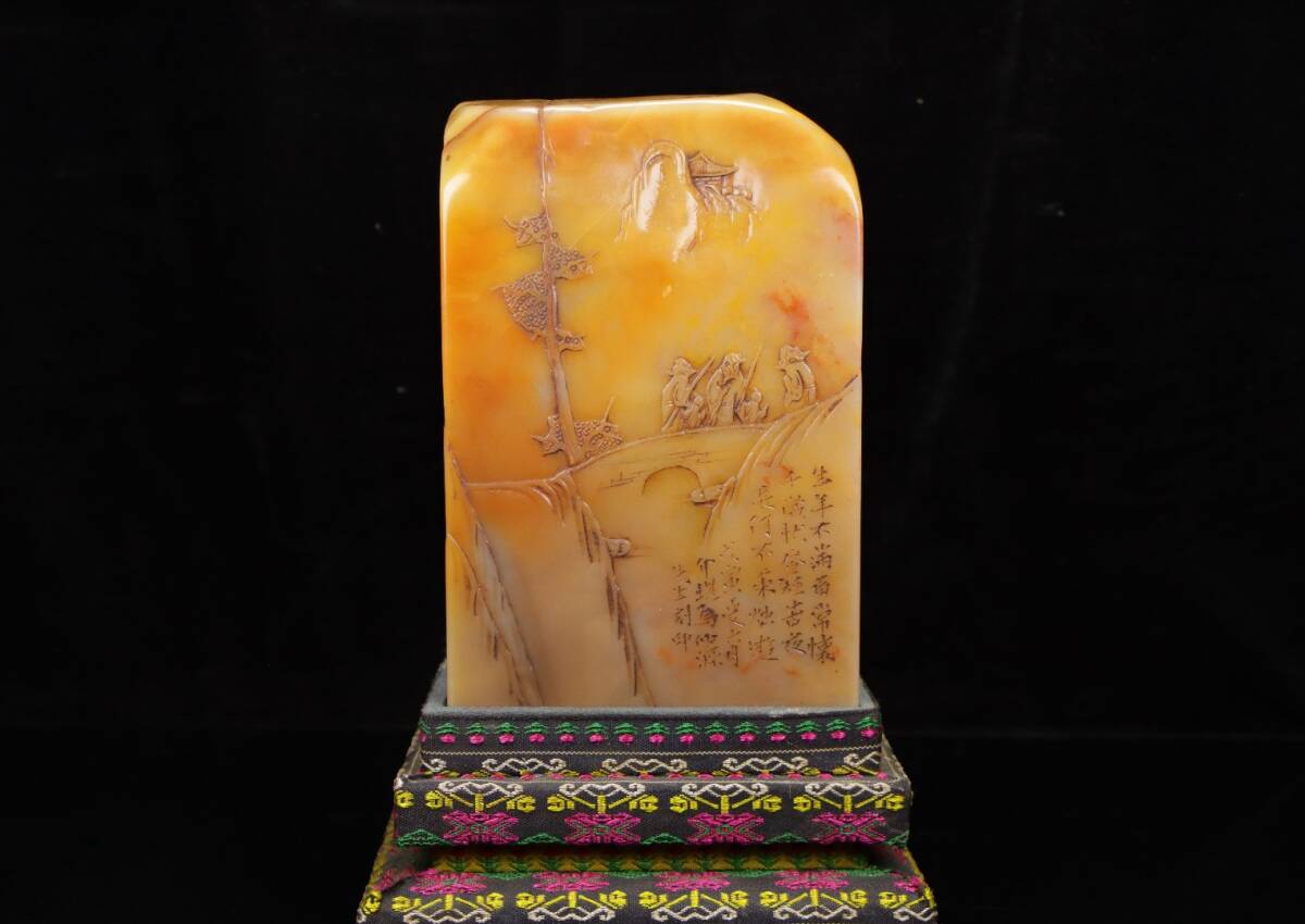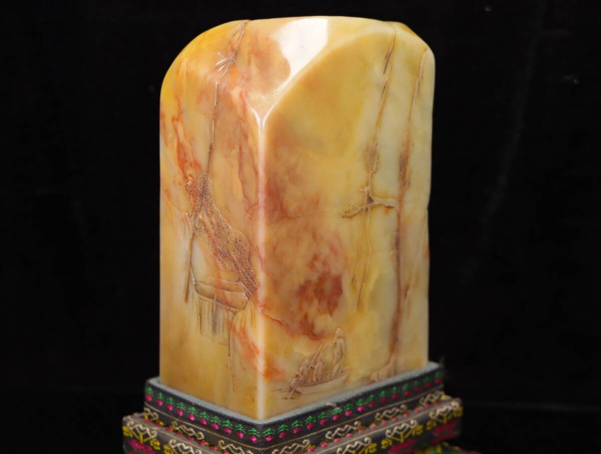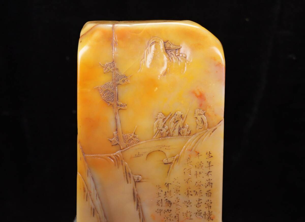 *珍品旧蔵* 【中国篆刻家 方介堪】寿山石 田黄石 赤黄田のしゃれ彫りの登高 閑章 印鑑 天然石 篆刻 古印材 極細工 中国古玩 骨董品 H48