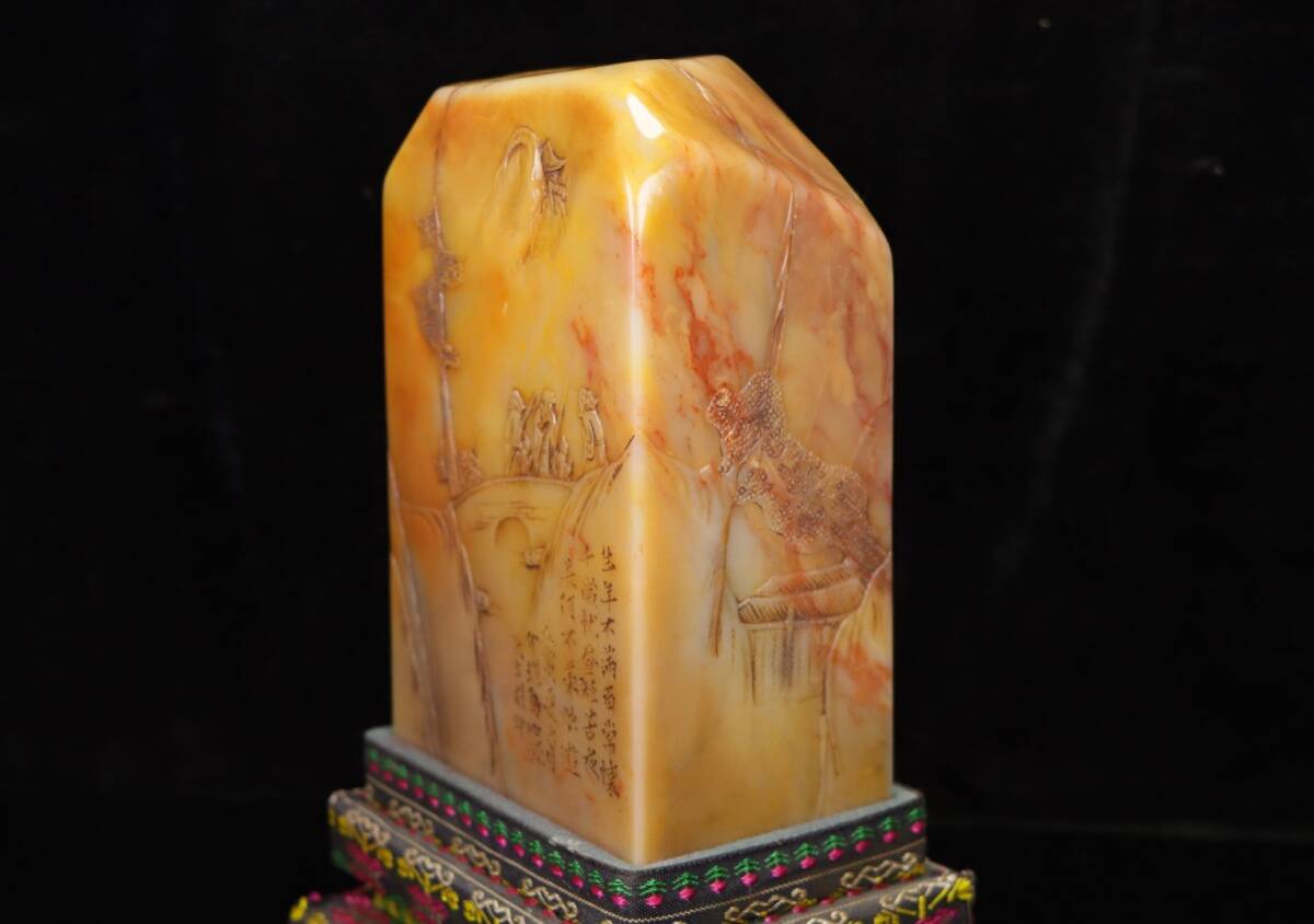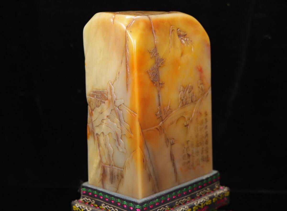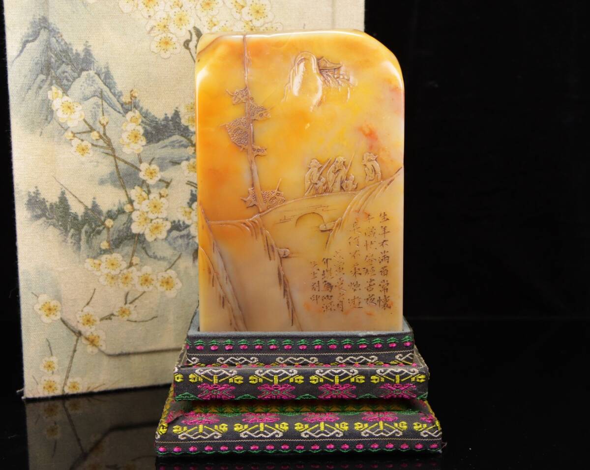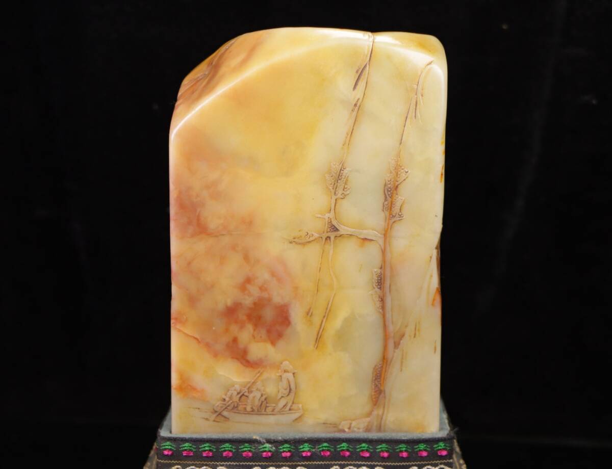 *珍品旧蔵* 【中国篆刻家 方介堪】寿山石 田黄石 赤黄田のしゃれ彫りの登高 閑章 印鑑 天然石 篆刻 古印材 極細工 中国古玩 骨董品 H48