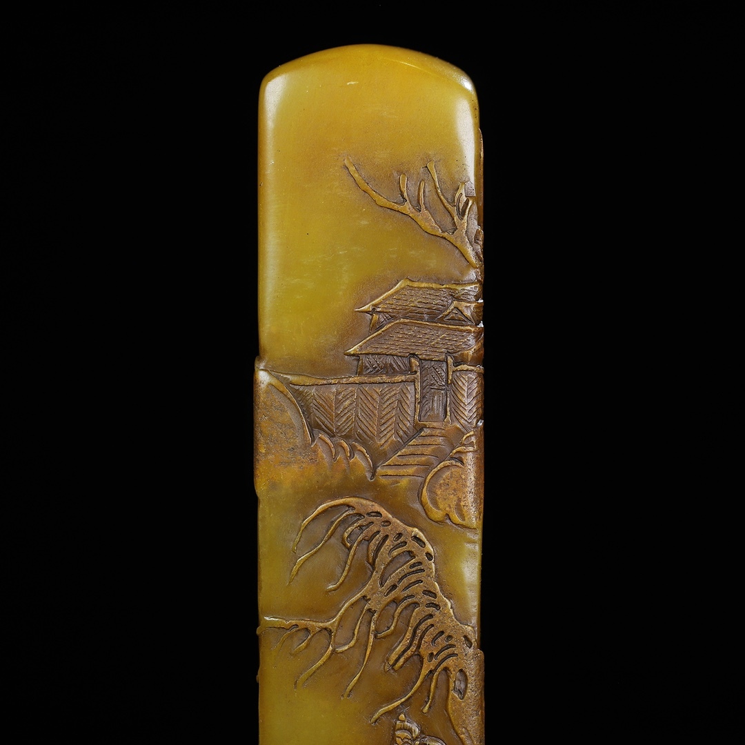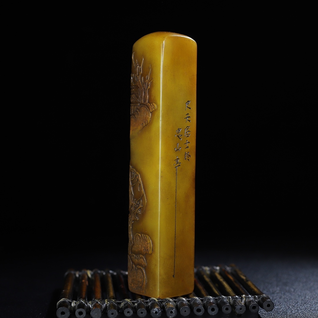 人間国宝 和田玉【寿山石松下会友人物薄意印章】中国古美術 中国骨董 工芸品 彫刻品 時代物 本物 珍品旧蔵 伝世家珍 | |||
