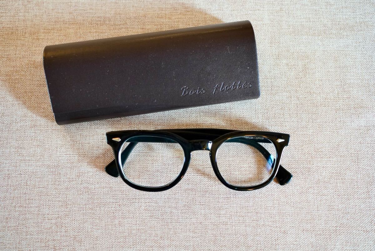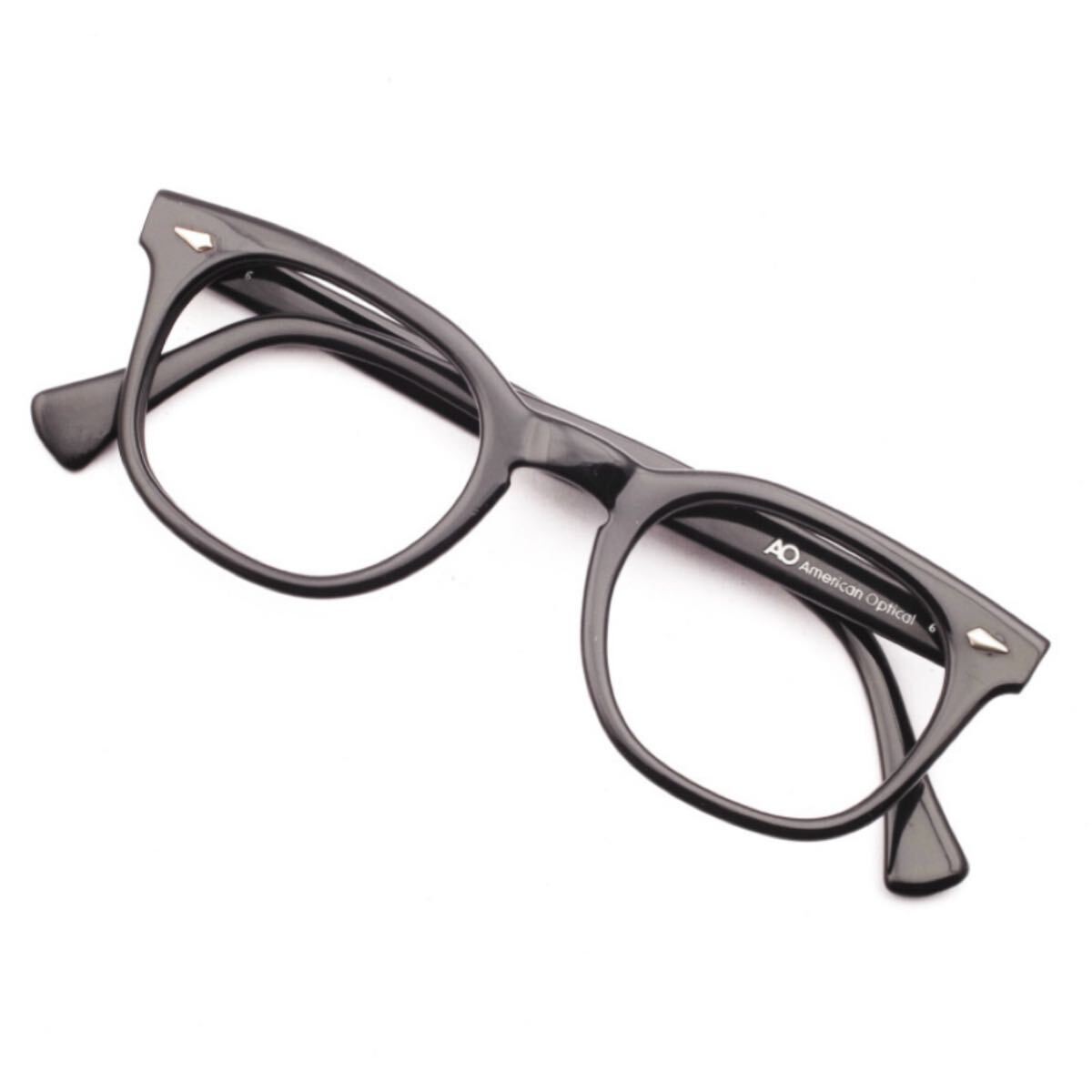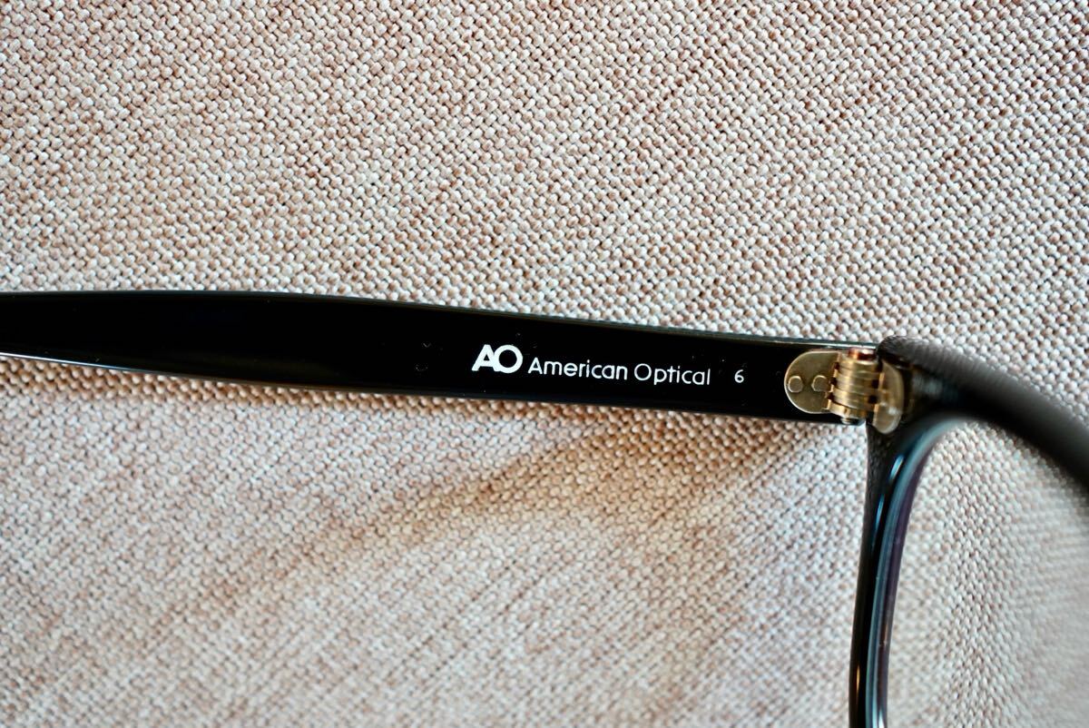 出品するフレームはテンプルに1960年後期のAmerican Opticalのロゴが入った正規品です。色はオニキス(黒)で一番人気のカラーです。