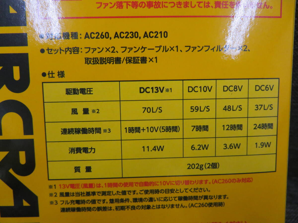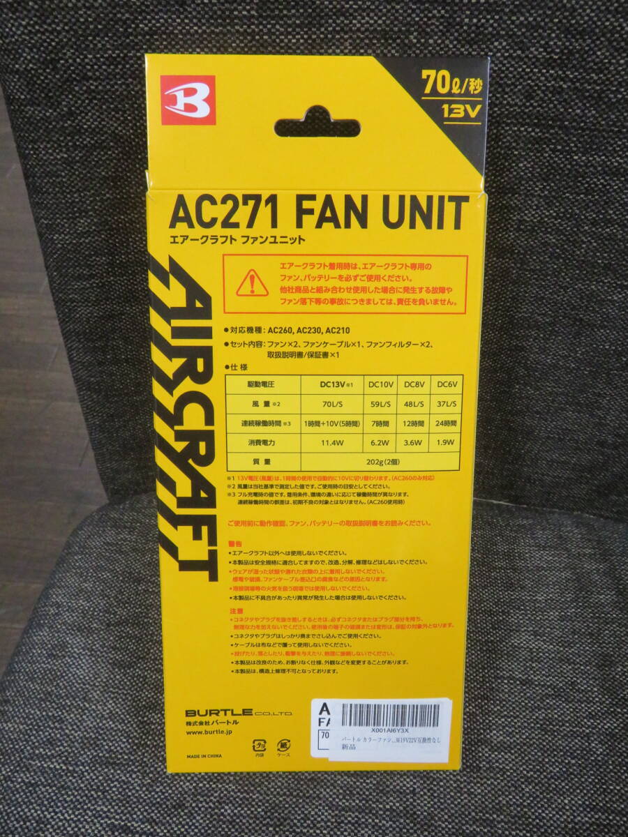 I-109)バートル/BURTLE★空調服用・エアークラフト★ファンユニット★AC271★京セラ★バッテリー無し★美品・開封済み