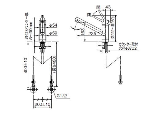 上面施工:取付けの際に面倒なカウンター下側からの作業が不要です