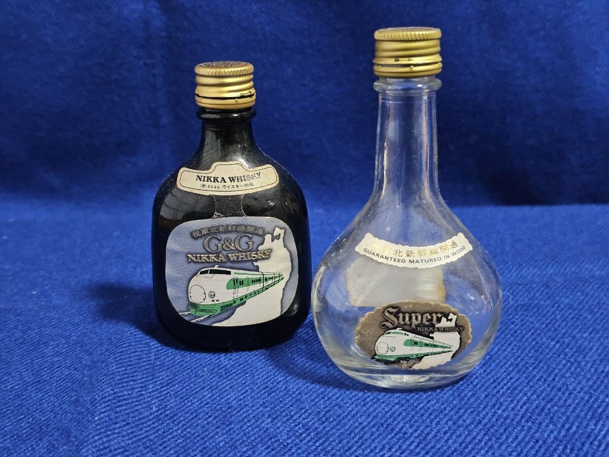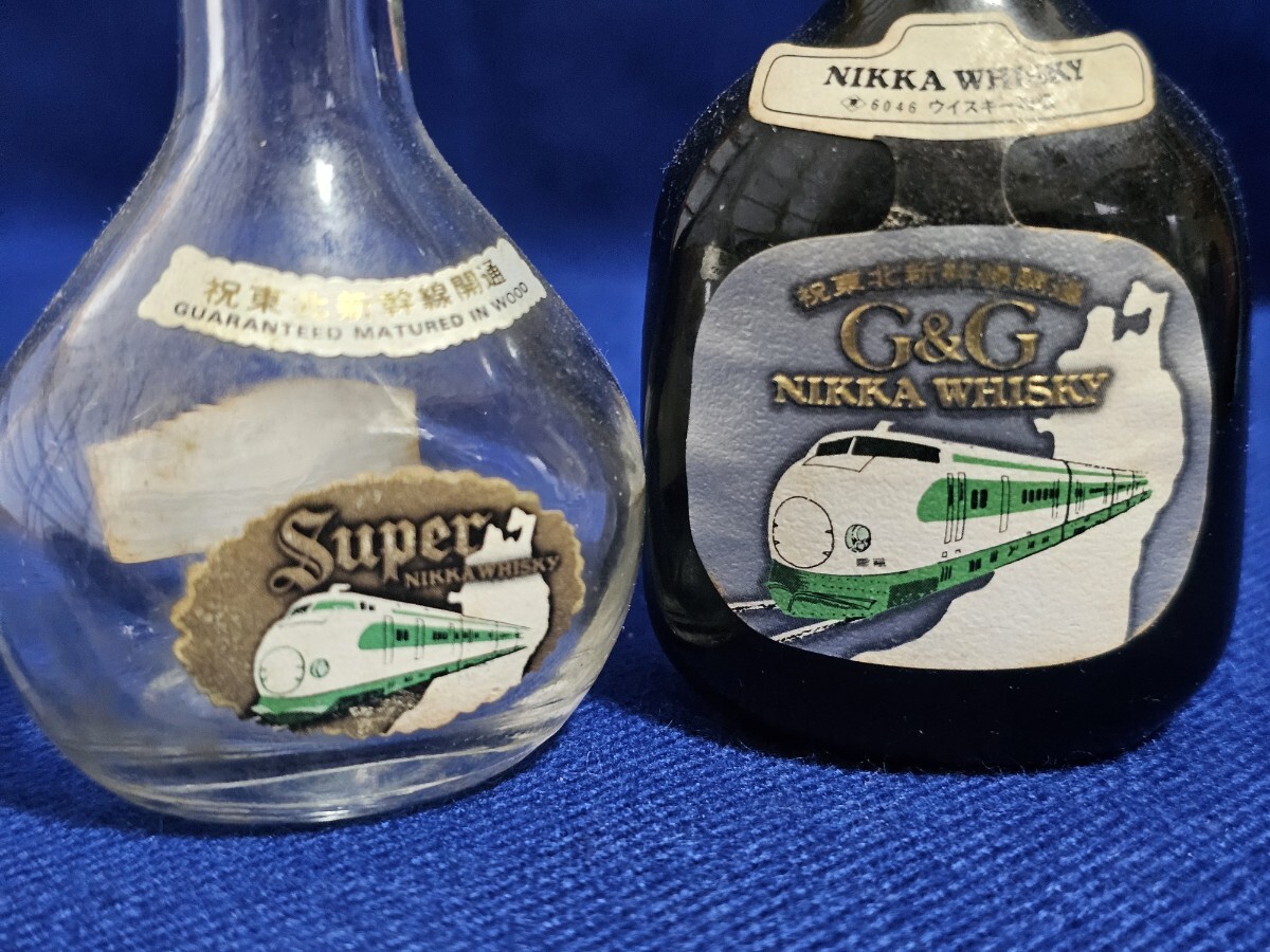 東北新幹線開通記念 ニッカウヰスキーの記念ミニボトルです。どちらも50ミリリットル、中身はありません。画像にてご判断下さい。
