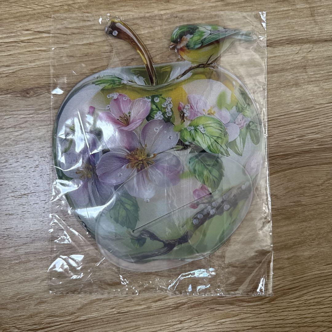 キラキラ宝石デコレーションされたリンゴと花のアクリルスタンドです。