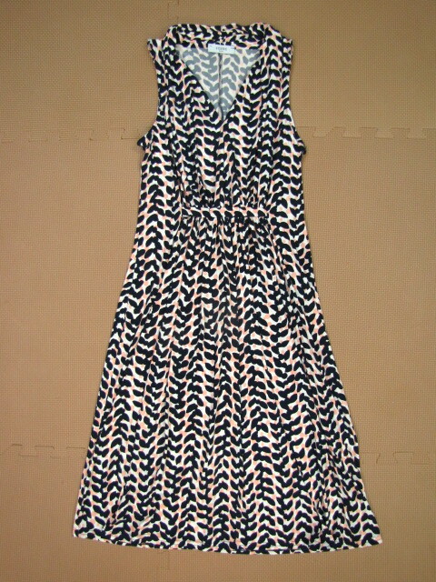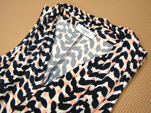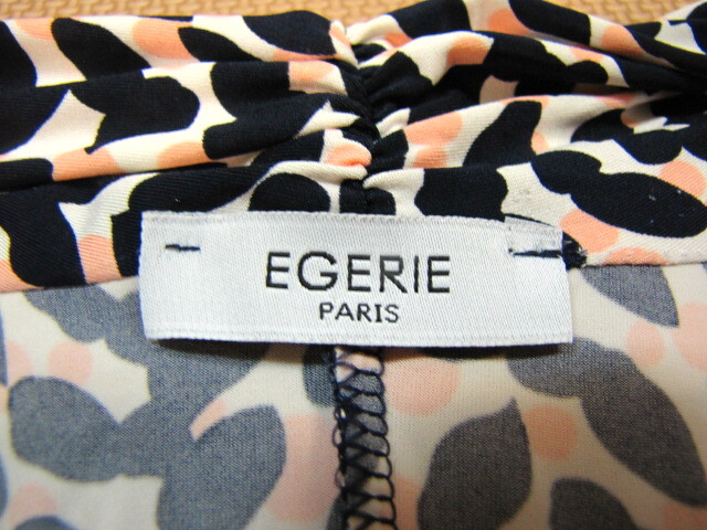 CG11*美品 フランス製 EGERIE エジェリ ストレッチ 総柄 ノースリーブ ギャザー プリーツ 膝丈 ワンピース ミニ