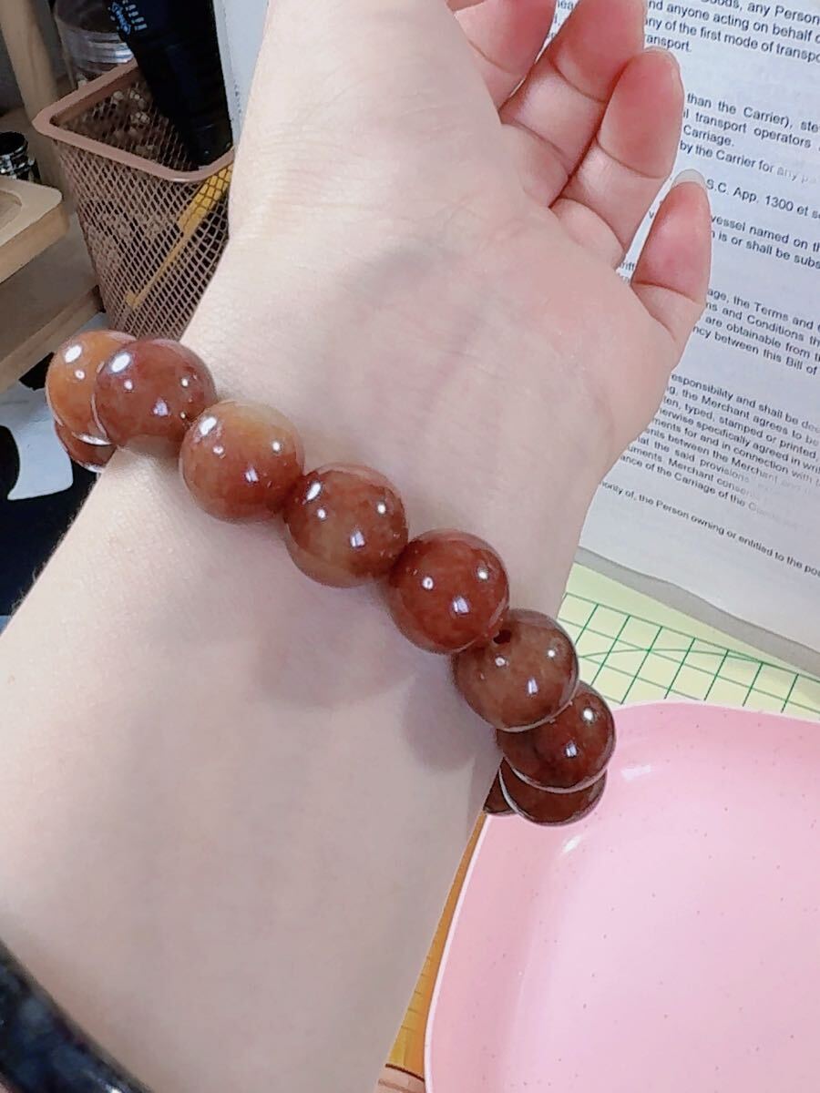 R2-0368天然本翡翠《本物保証》赤翡翠 ブレスレット16cm 一点物 魔除け 昇進 成功 風水 金運 財運 幸運 幸福 縁起物 パワーストーン