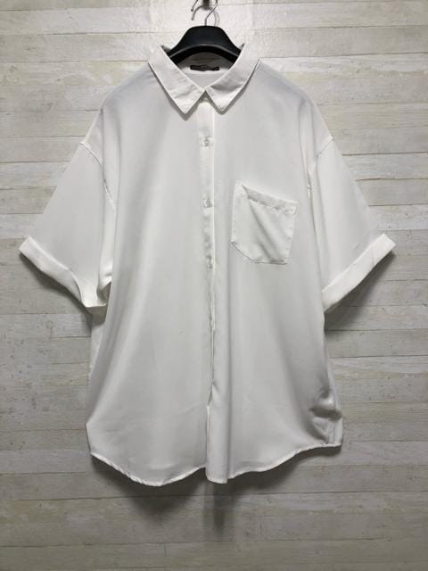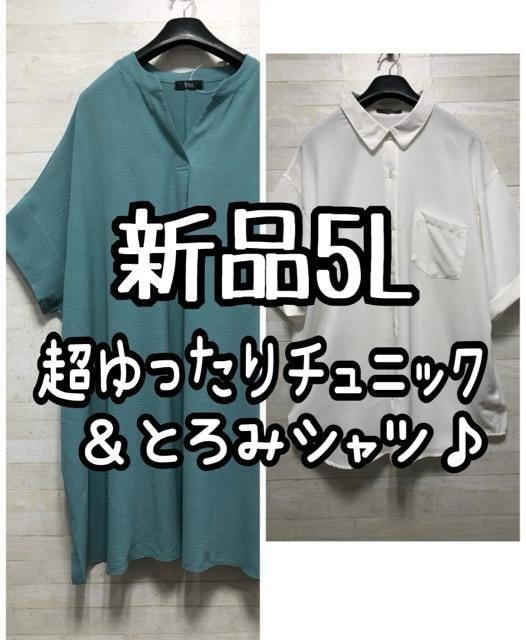 新品☆5L♪グリーン超ゆったりチュニックワンピ&白半袖シャツ☆G895